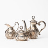 Rik floral reliefdekor och kransformade lockknoppar, grenliknande hänklar.