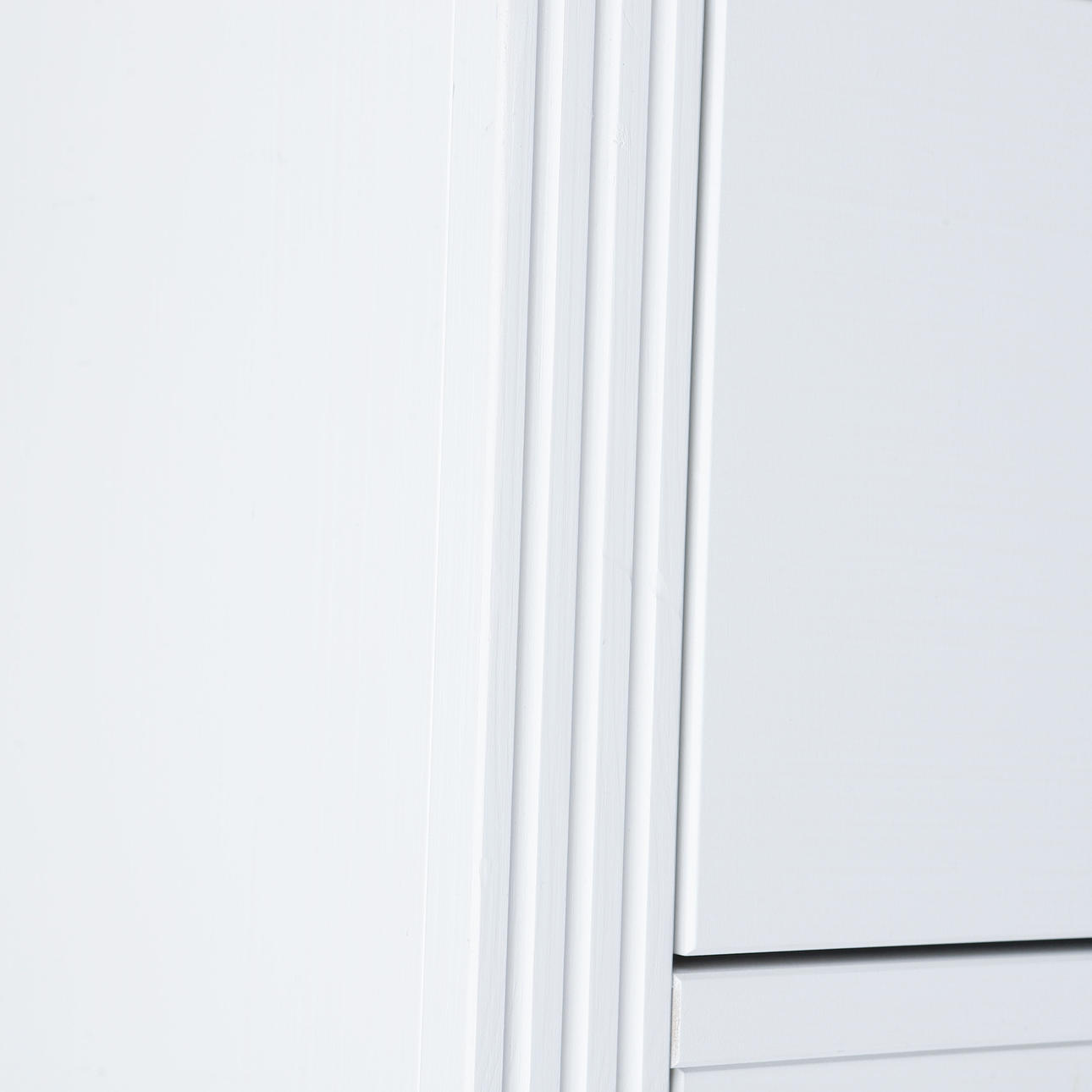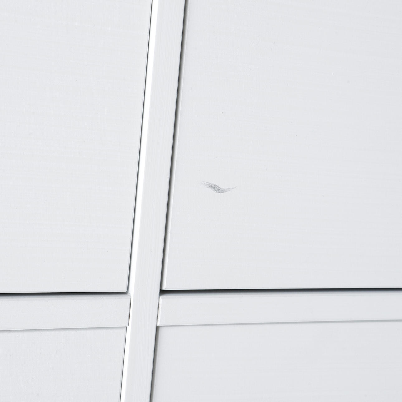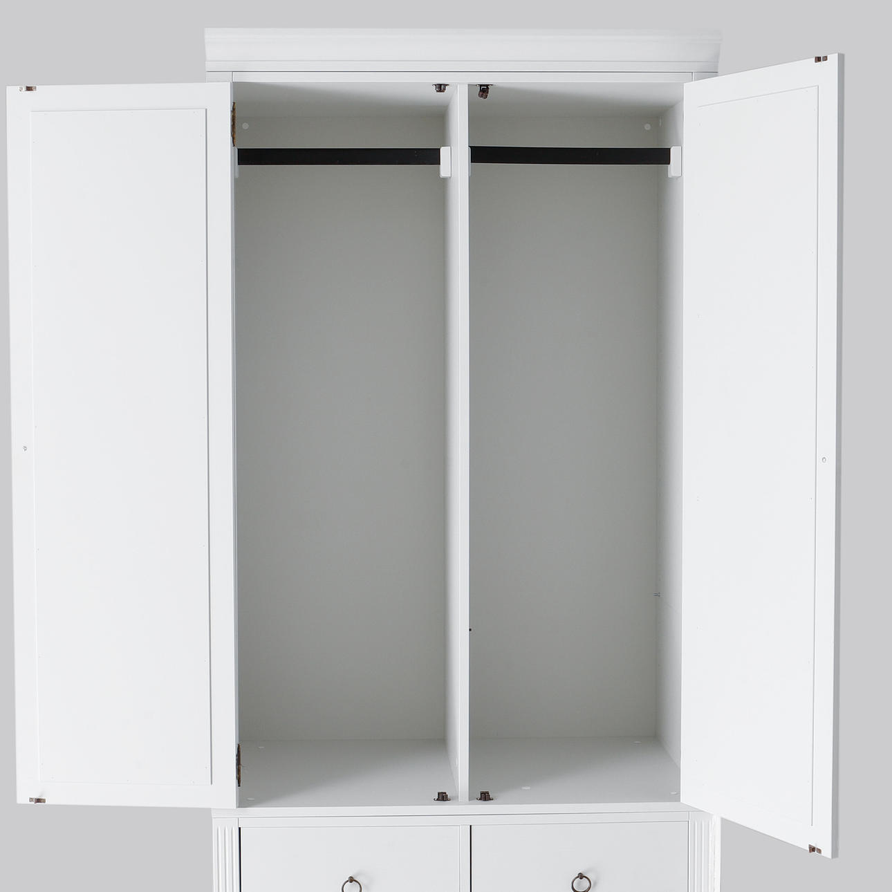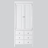 Gråmålat. Dörrpar med bakomvarande klädstänger samt sex utdragslådor. Bredd ca 98 cm, djup ca 57 cm, höjd ca 235 cm. Hyllplan i kartong medföljer, ej examinerade.
