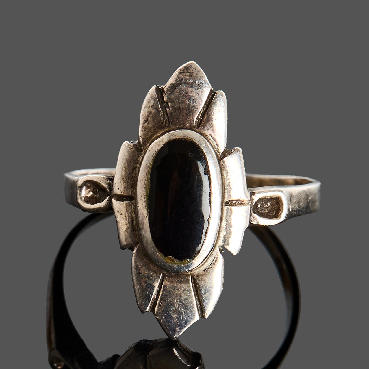 Ring med svart plast, stämplad 925. Ringstorlek ca 19,5 mm.