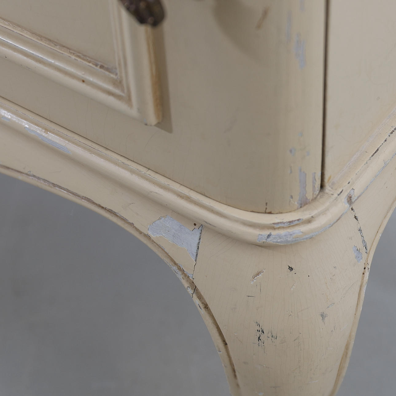 Bemålat trä. En låda samt en dörr.