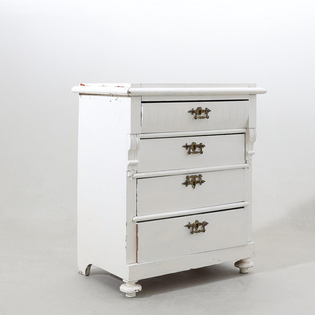 Bemålat trä. Skuren dekor. Fyra lådor.