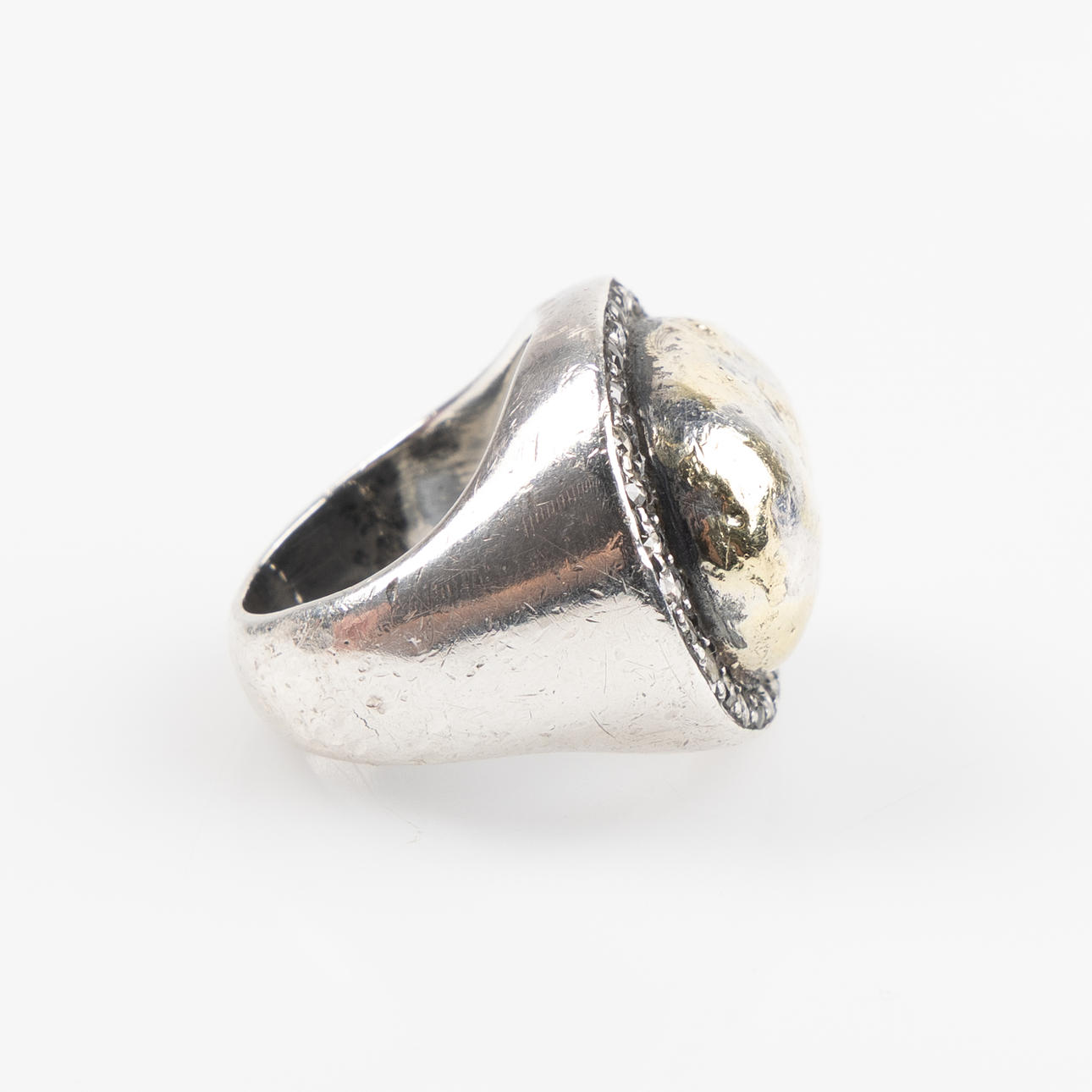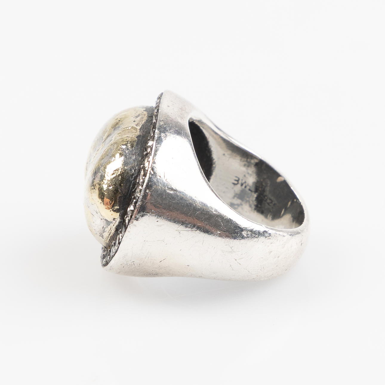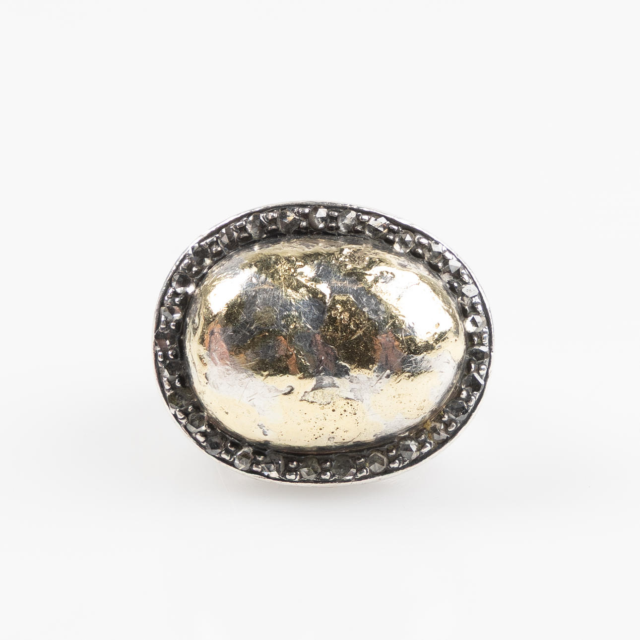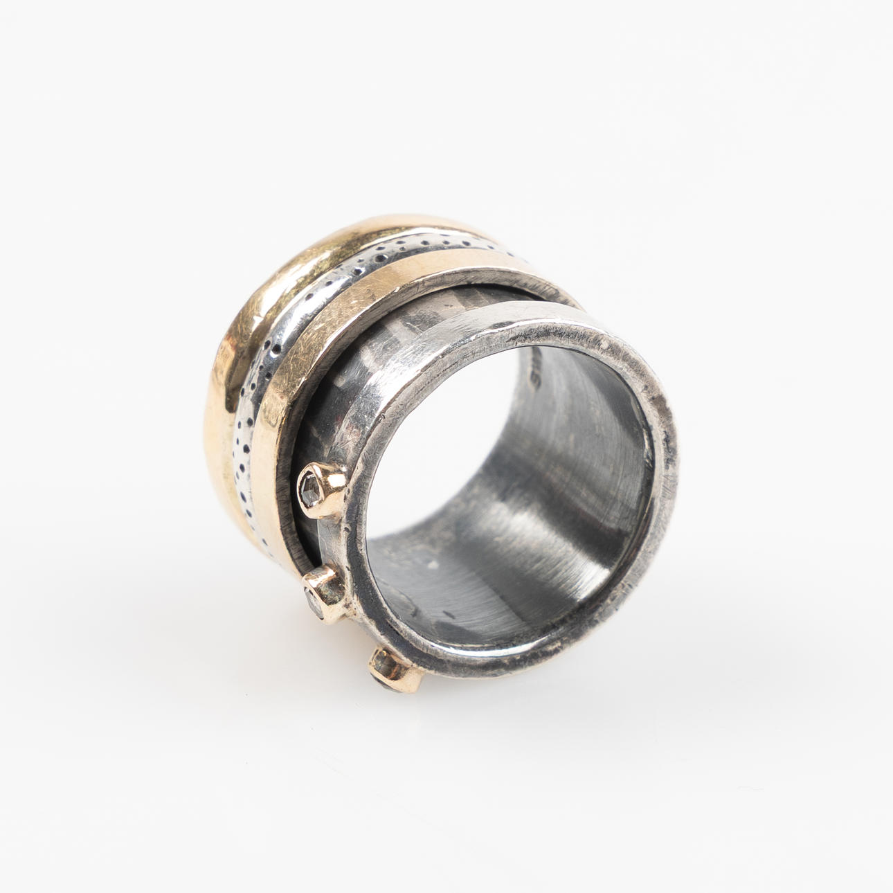 Ca strl 15. Designade av Birdie Wendelboe. Oxiderat silver, gulddetaljer, diamanter.