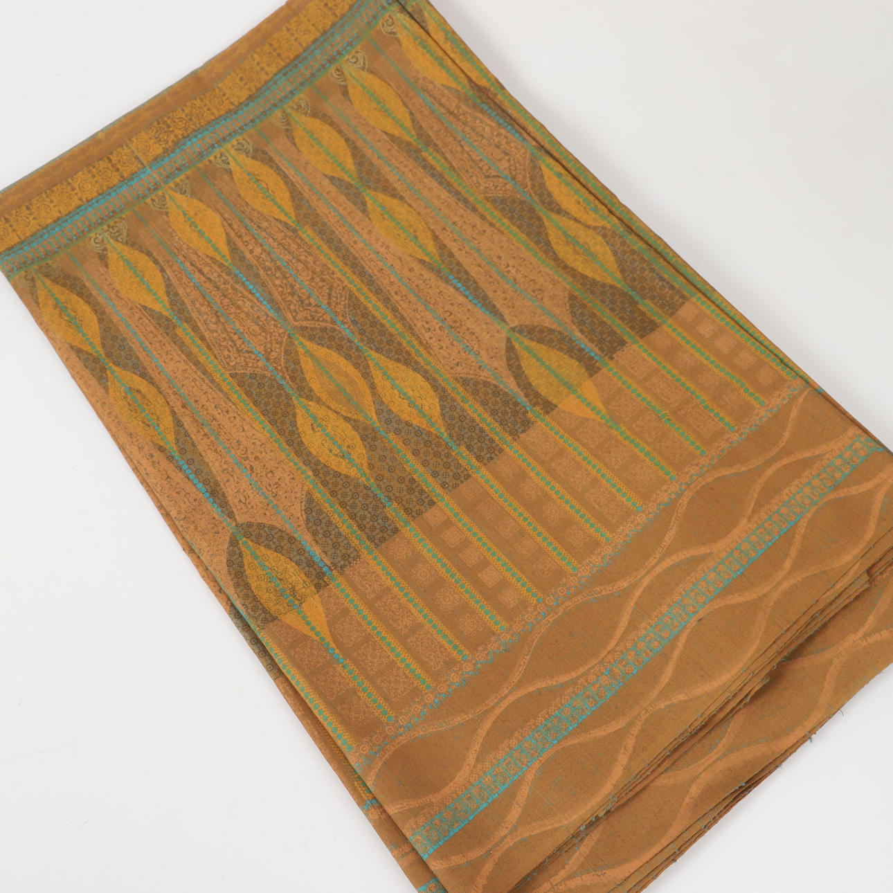 7 rullar tyger, bl. a. grönt, orange, gult och vitt bomullstyg