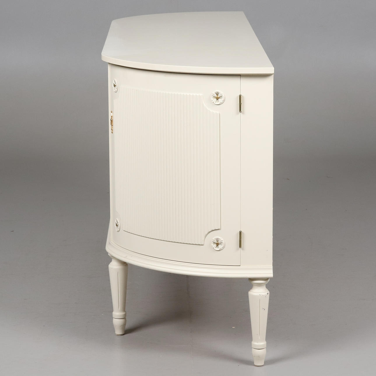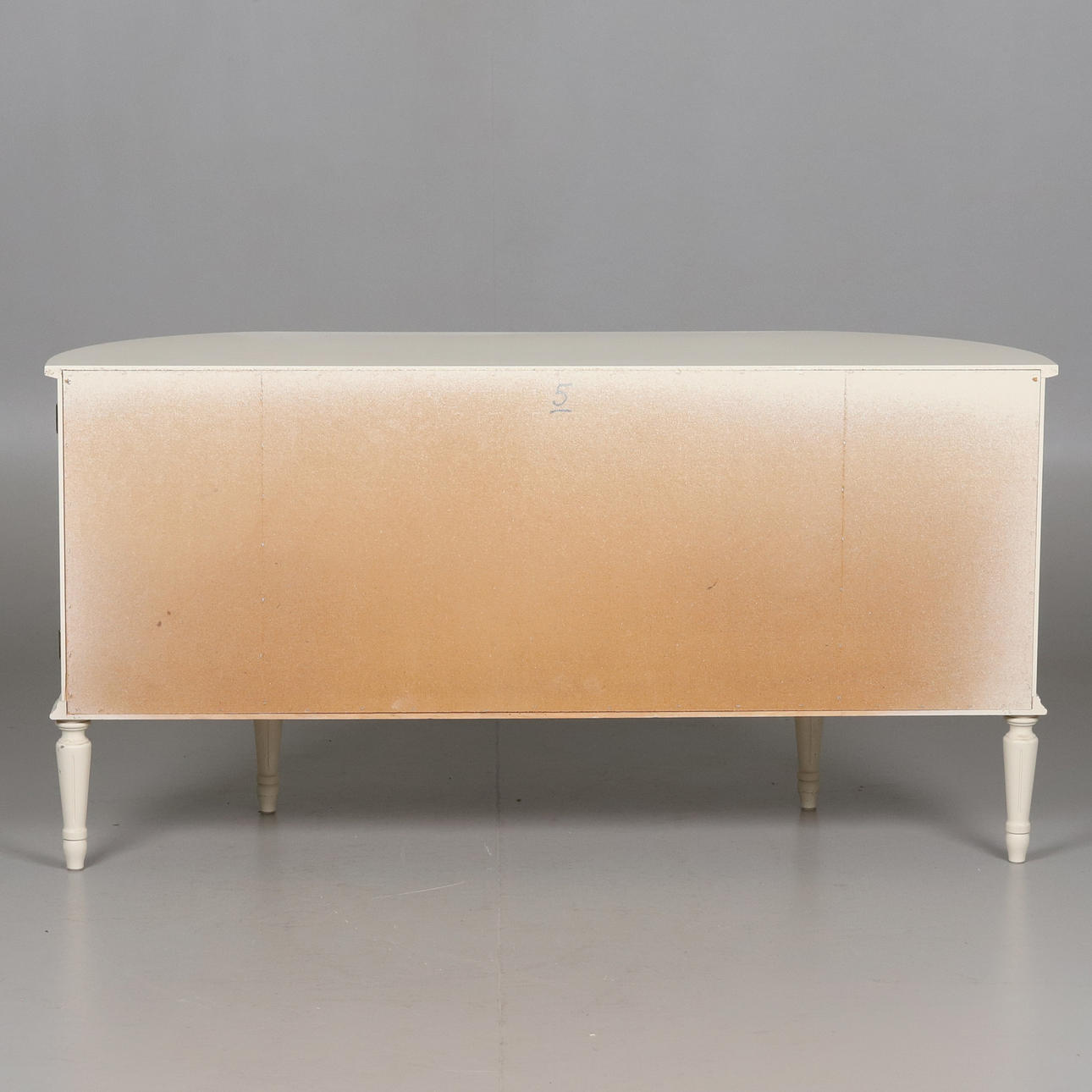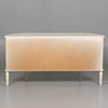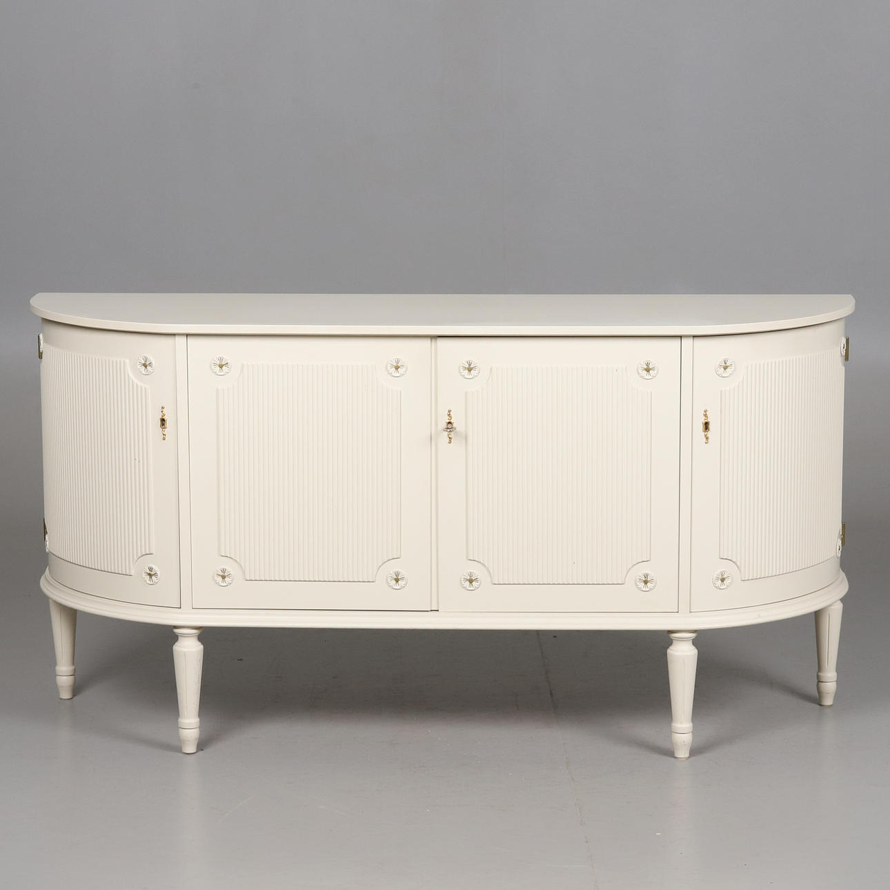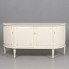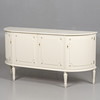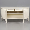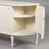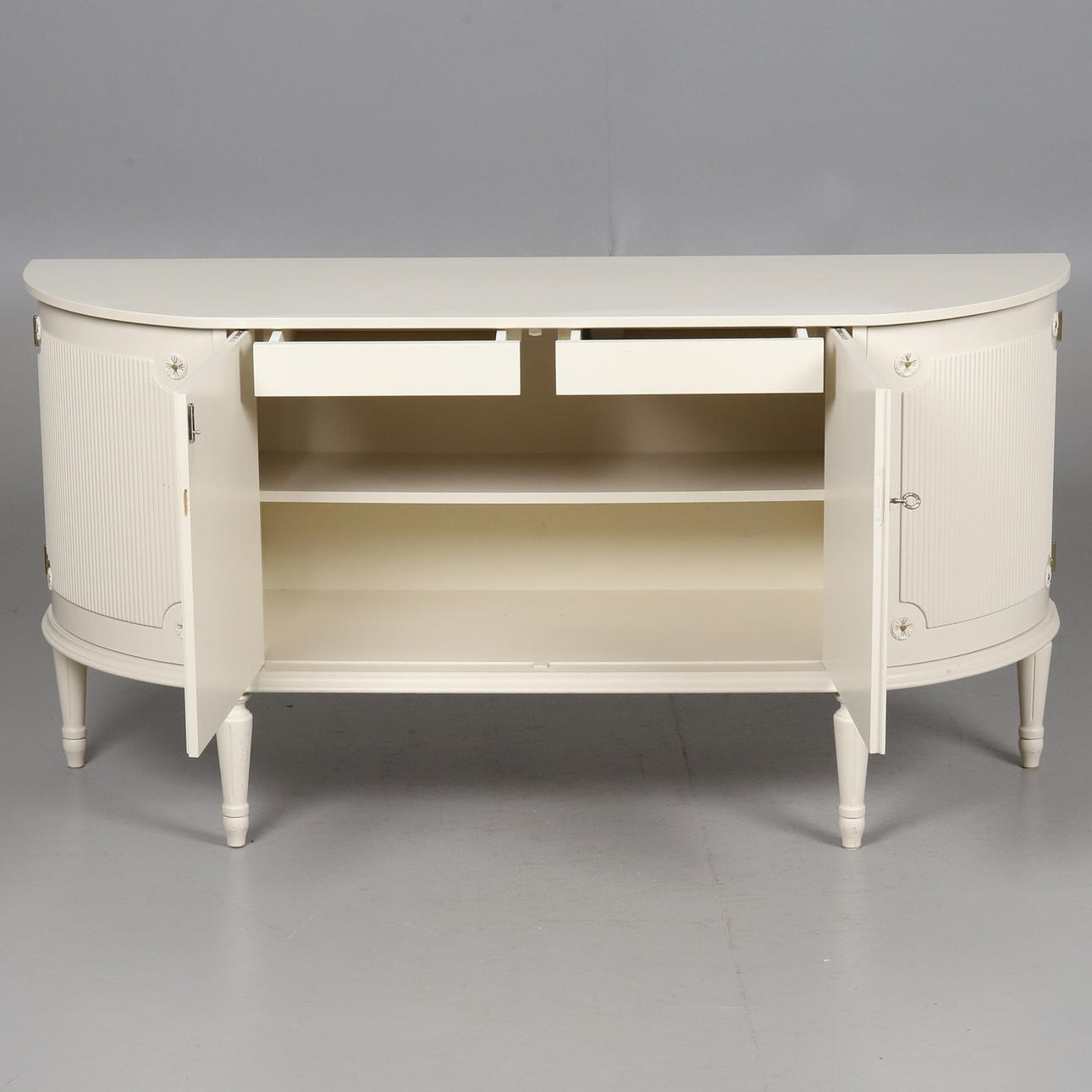 Låsbara dörrar med bakomliggande hyllplan och två lådor. Höjd 76,5 cm, bredd 149 cm, djup 43 cm.