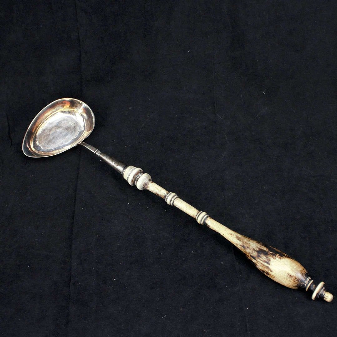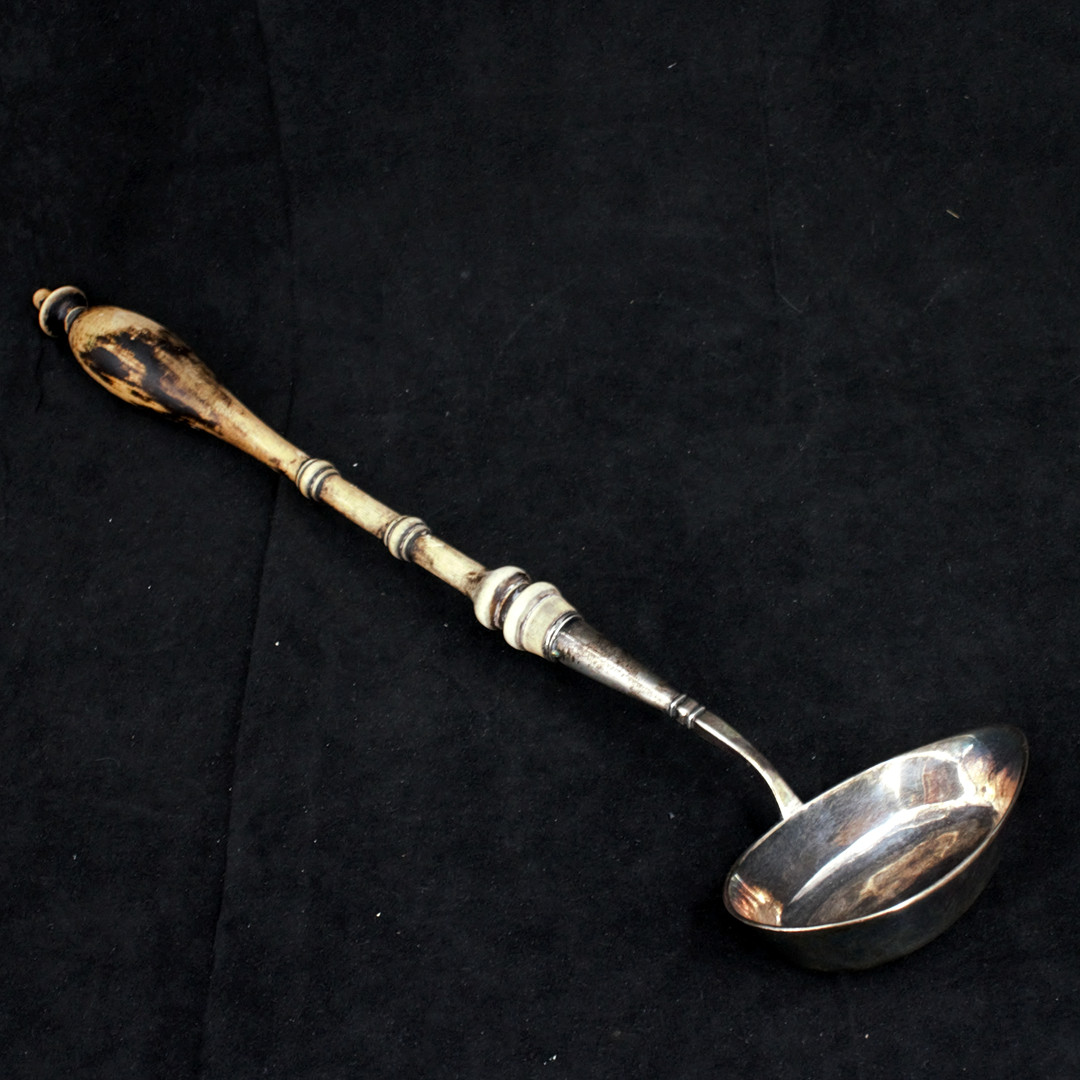 4983670. SOPPSLEV med träskaft, silver, 1850.