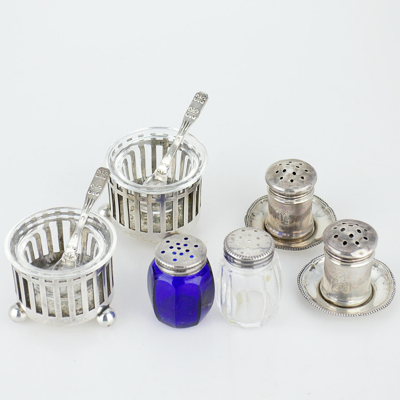 2 saltkar med glasskålar och skedar, K. Anderson, Stockholm, 1896.
