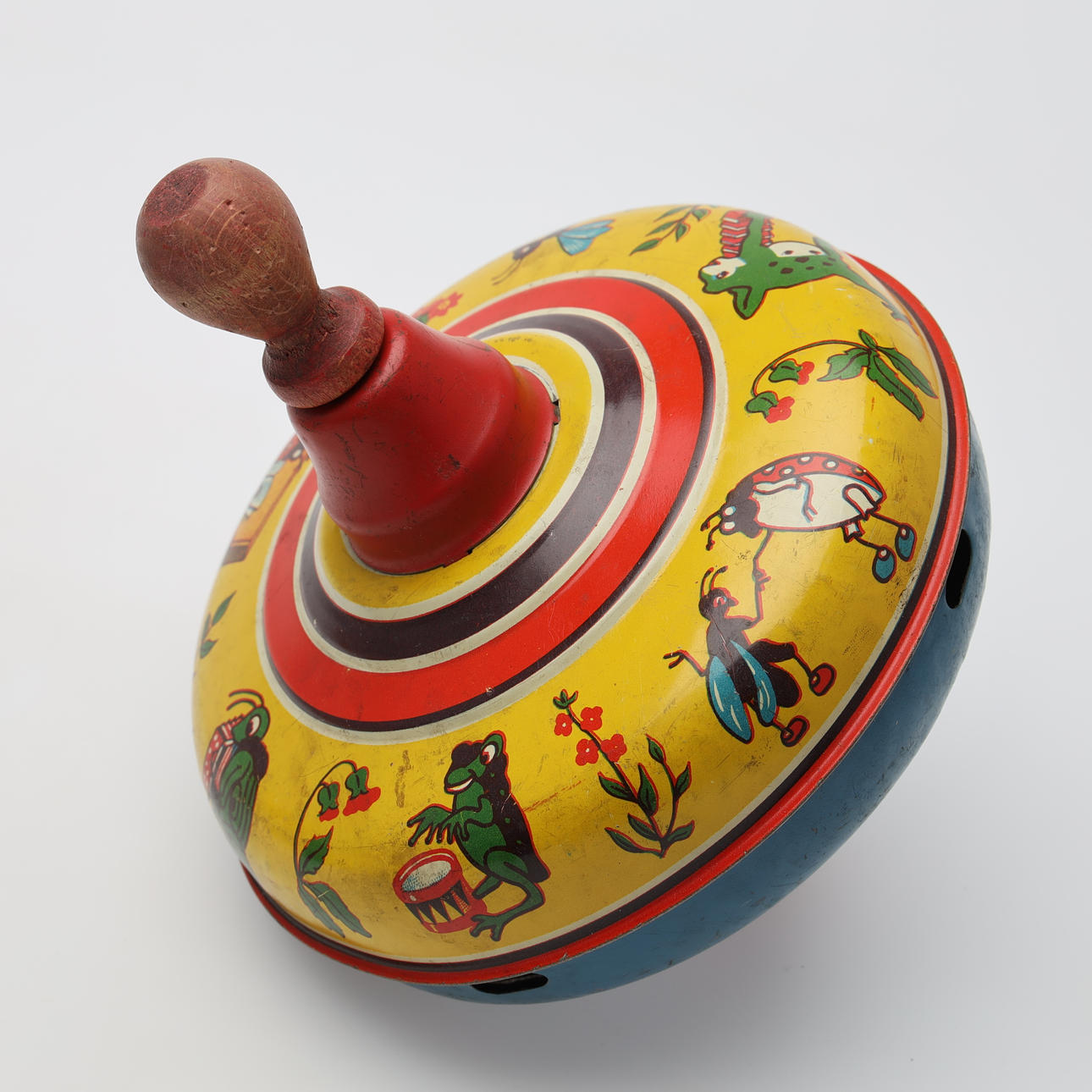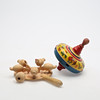 pickhönor trä diameter skiva ca 16 cm snurretopp metall diameter ca 14 cm.