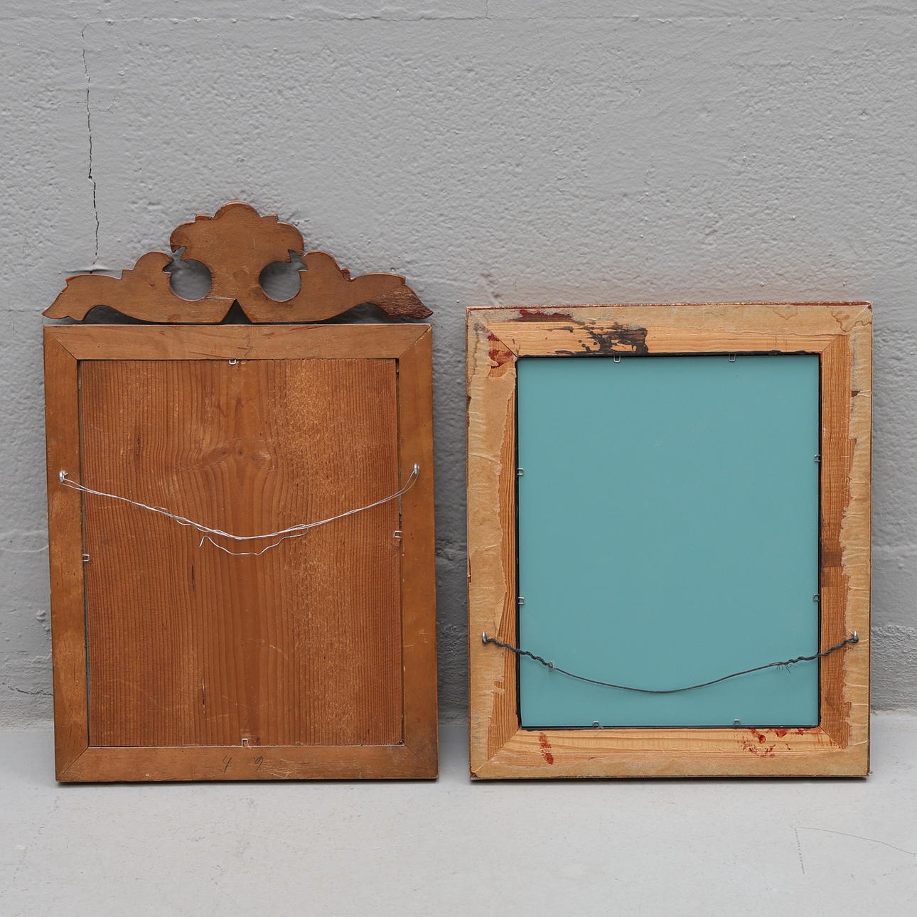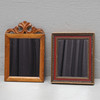 Höjd ca 41-33 cm, bredd ca 27-28 cm. Ena spegeln har troligen tillhört en piggtittare och har hål på båda långsidor.