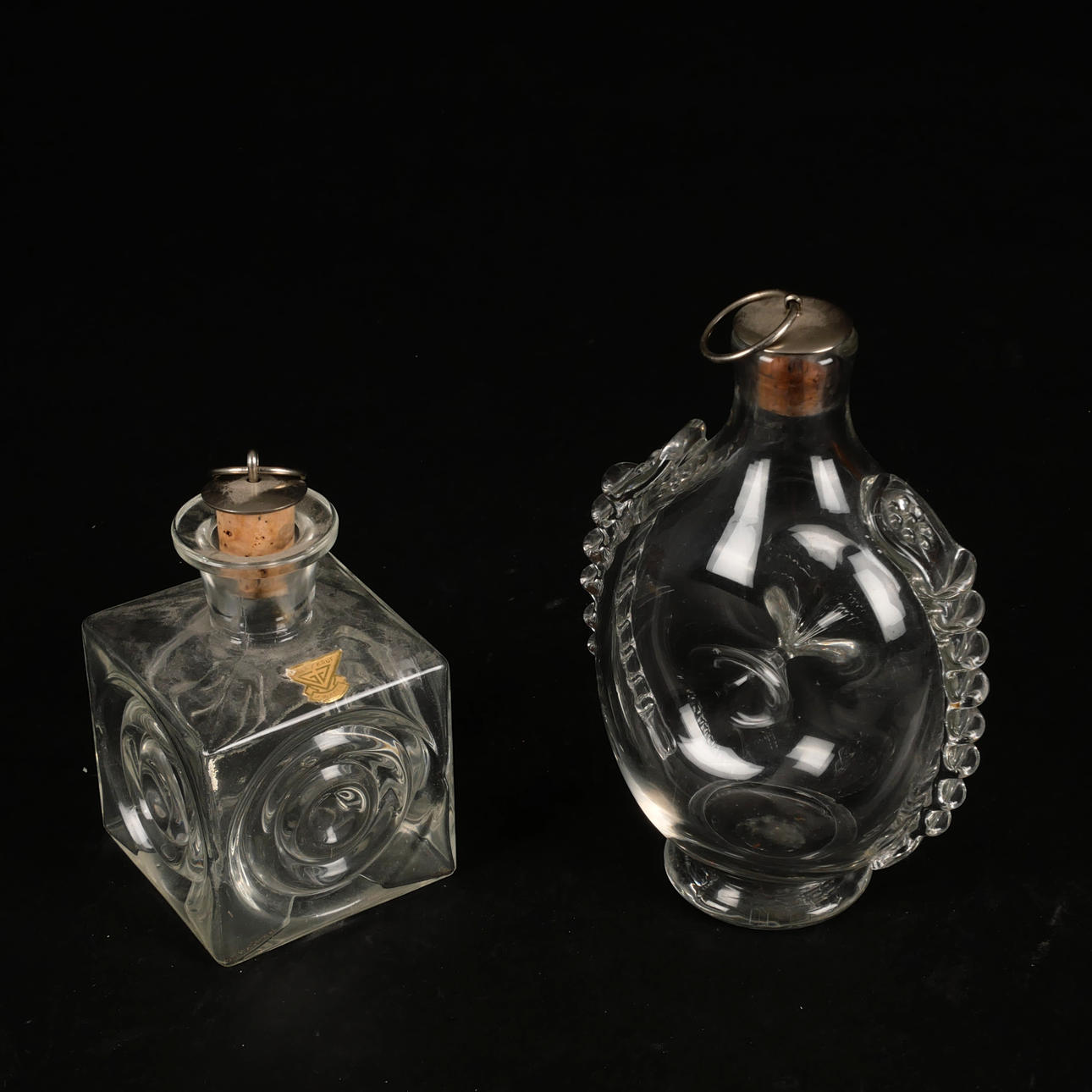 4984618. TVILLINGFLASKOR, BRÄNNVINSFLASKA, KARAFF, 4 st, glas, Gullaskruf.