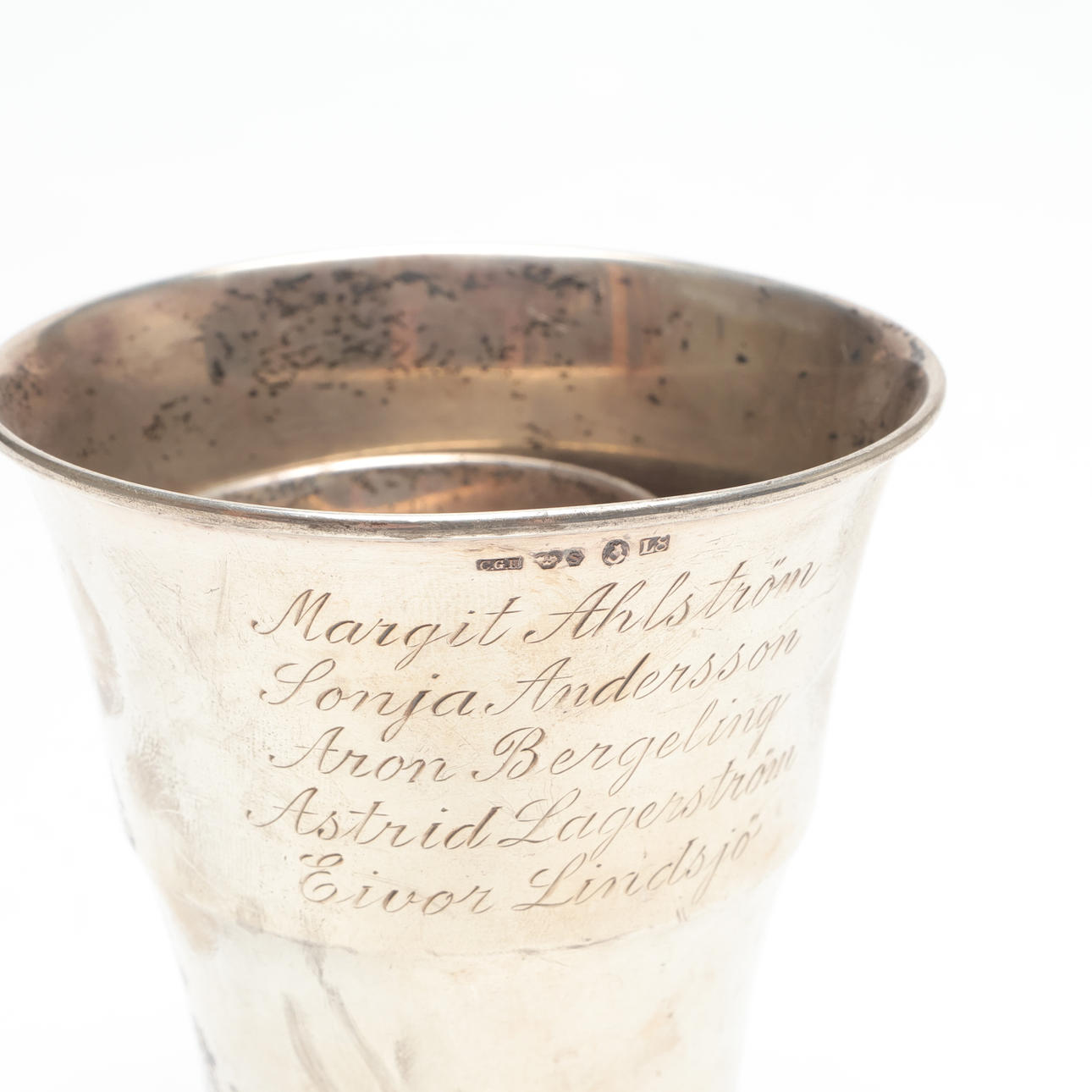 POKALER med träfot, silver, total vikt ca 119 gram.