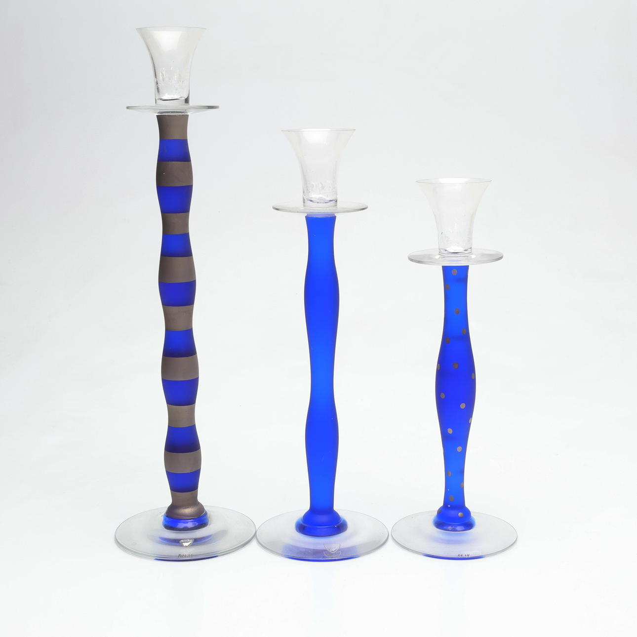 ANNE NILSSON. Ljusstakar, 3 st, "Celeste", Orrefors.