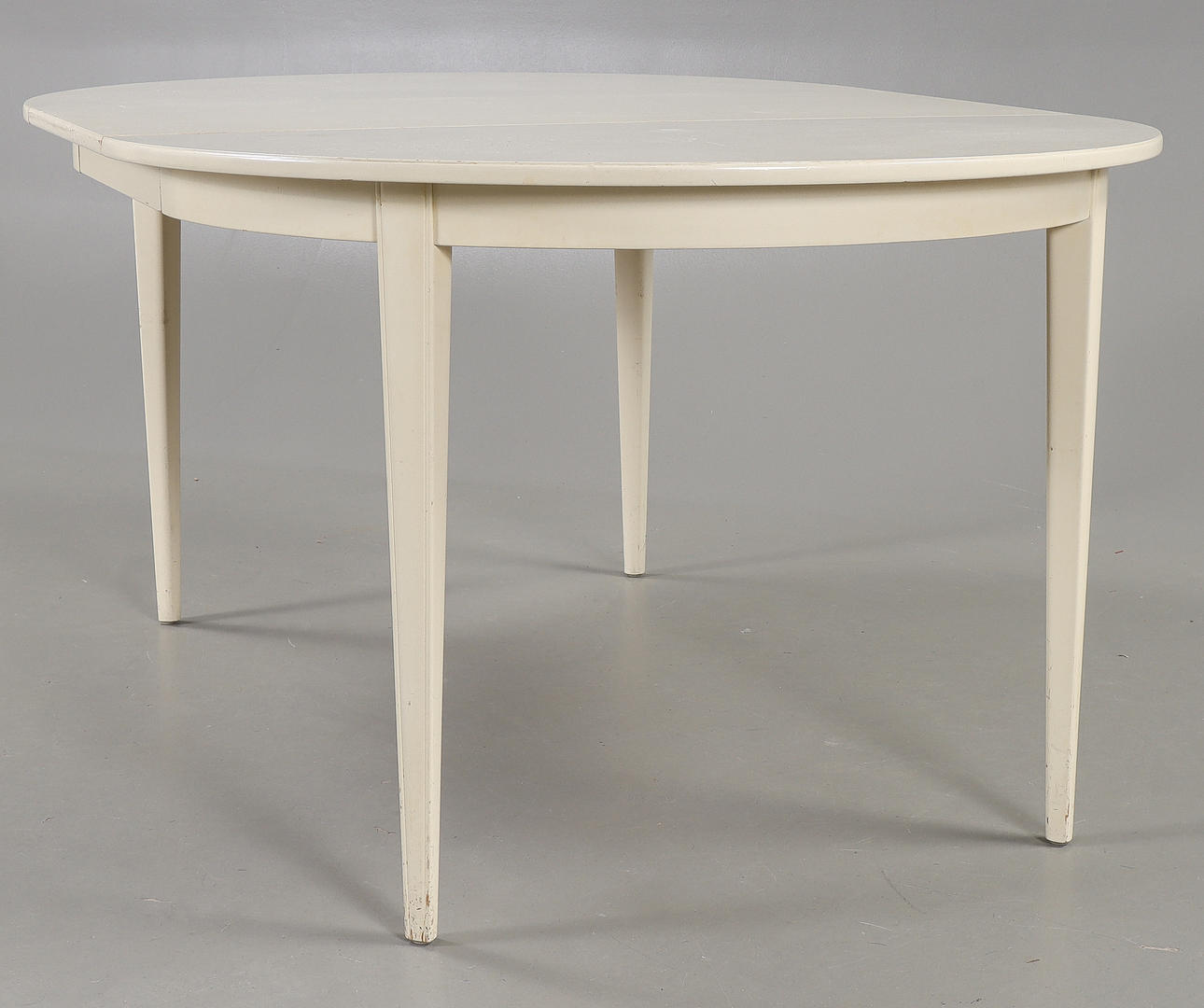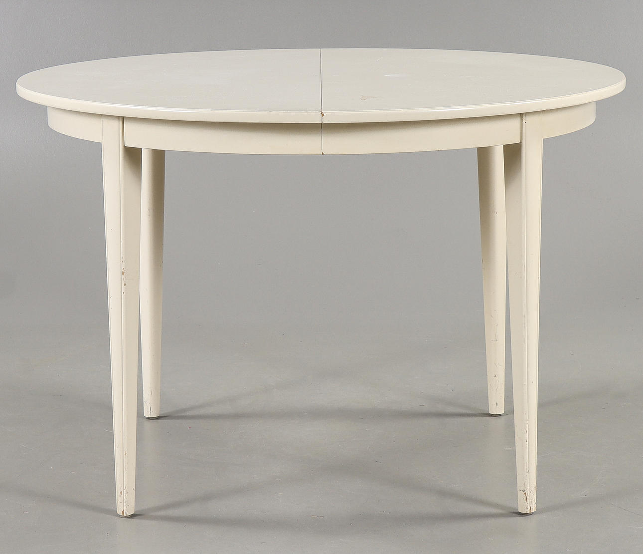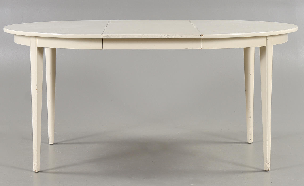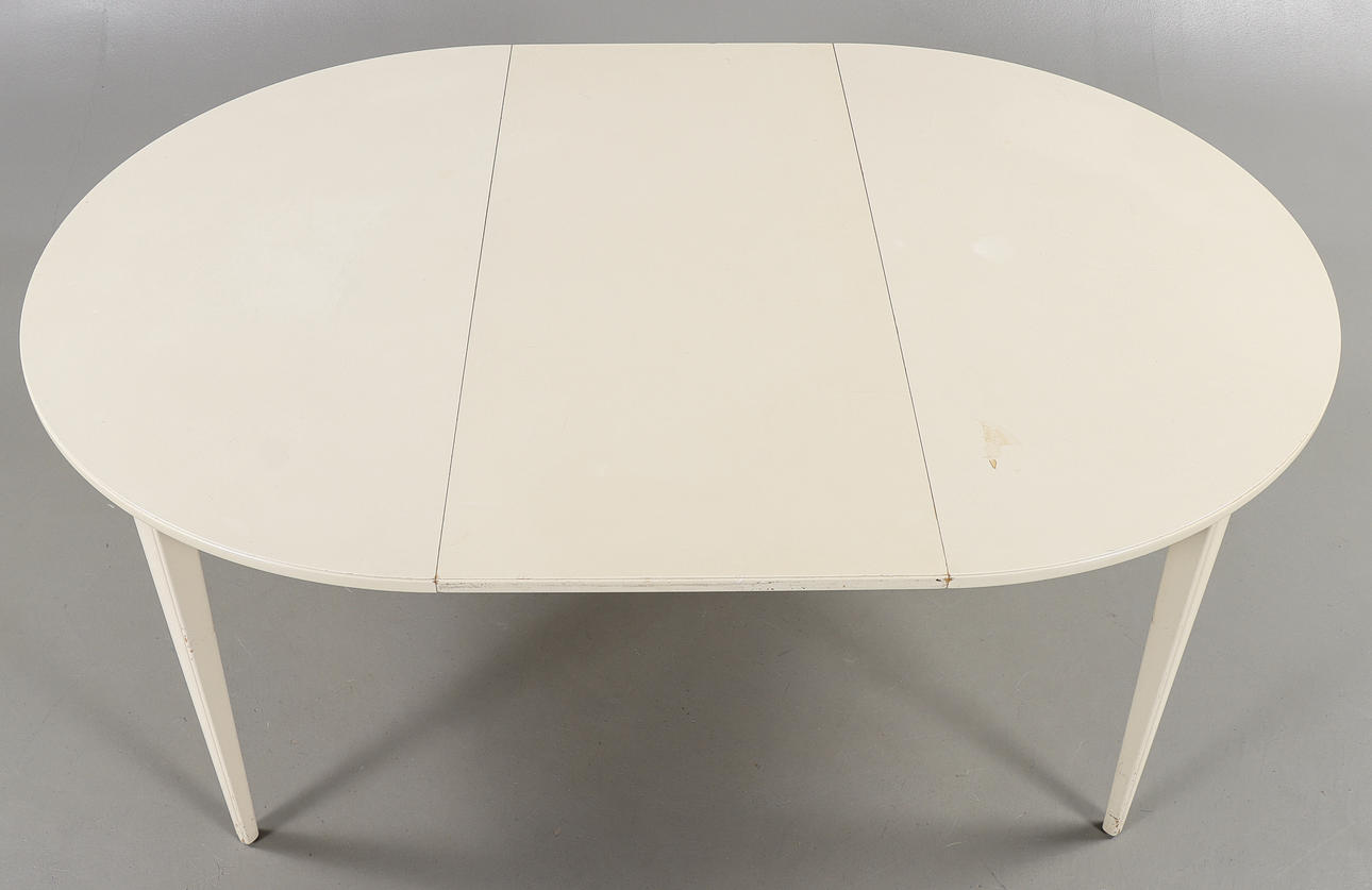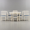 6 stolar samt bord. 2 iläggsskivor med sarg.