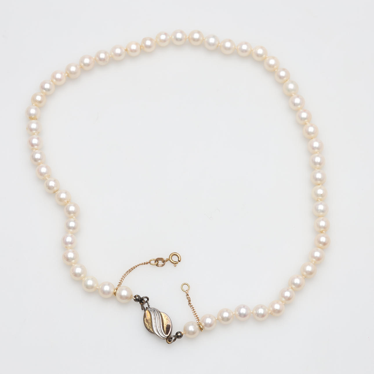 4985584. PÄRLCOLLIER, 18K guldlås och säkerhetskedja.