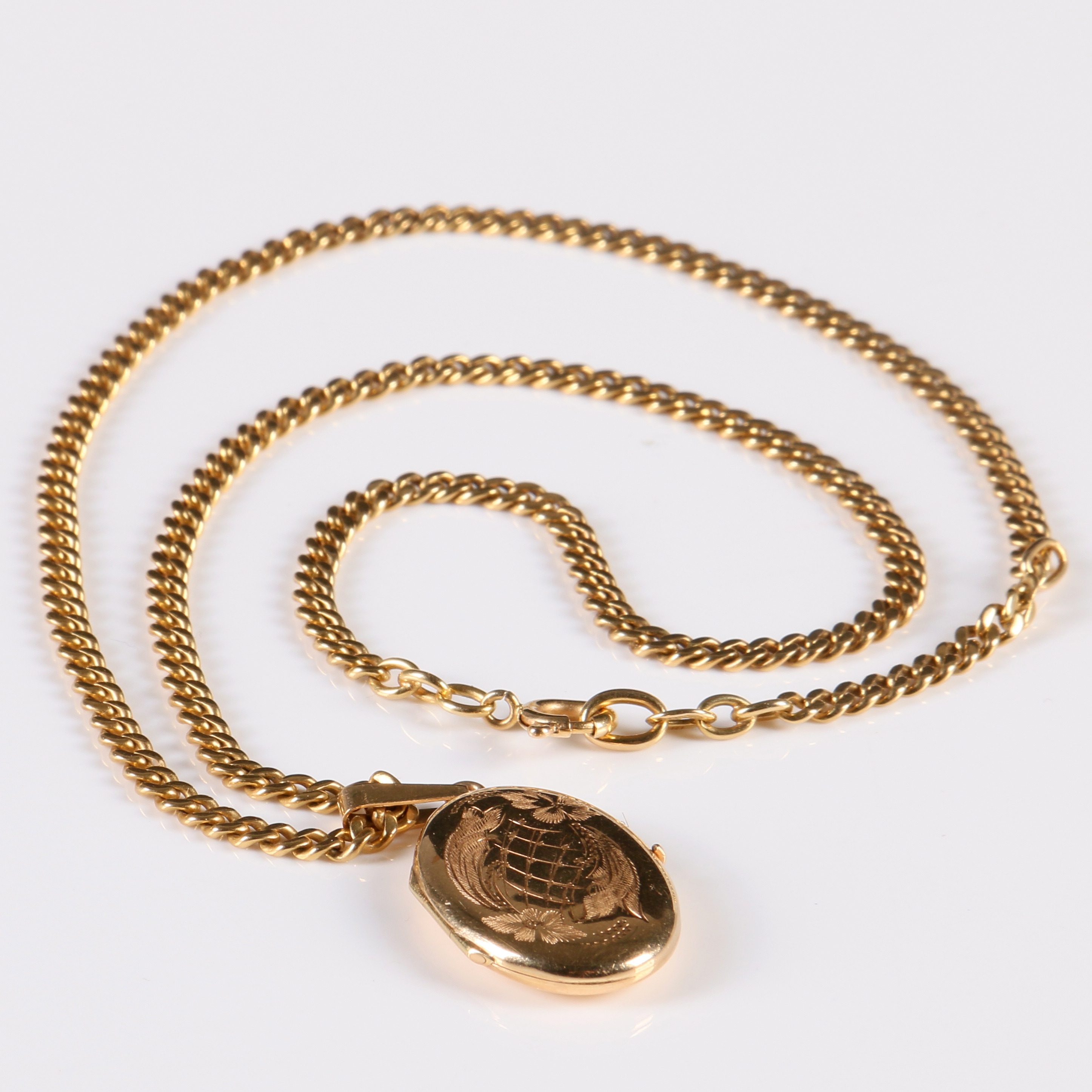 498568. COLLIER, med berlock, 18k guld, 1900-tal.