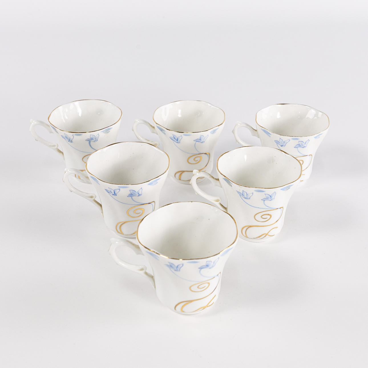 Kaffeservis i porslin med dekor av blå blommor samt guld, 15 delar, jugend, tidigt 1900-tal, Rörstrand