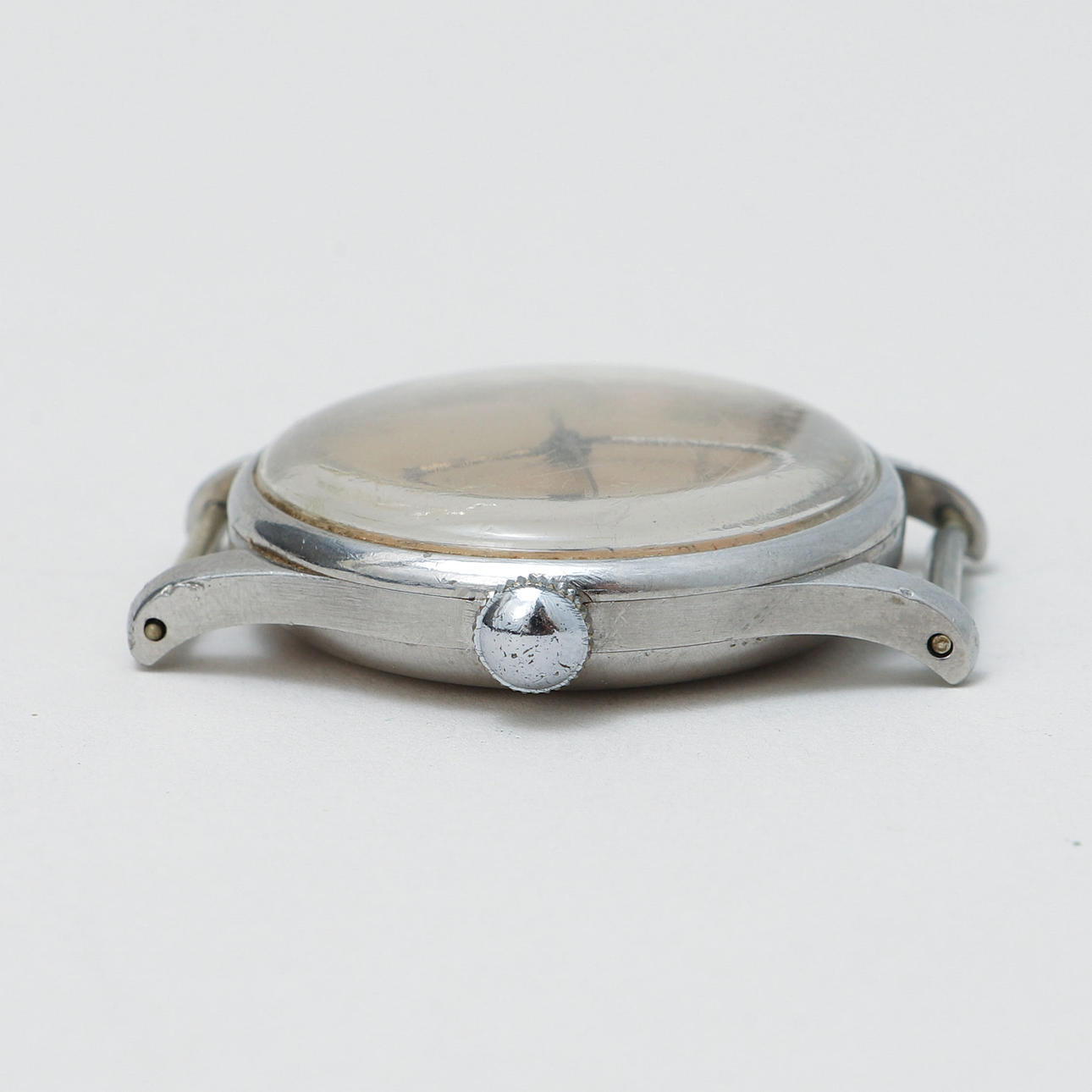Märken, fläckar, slitage. Lysfärgen avskavd på bland annat timvisaren. Delar kan vara bytta och renoverade över tid. Fungerade vid katalogiseringstillfället. Ingen funktionsgaranti lämnas.