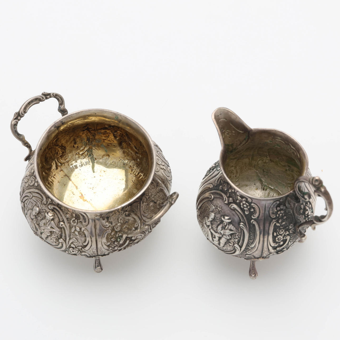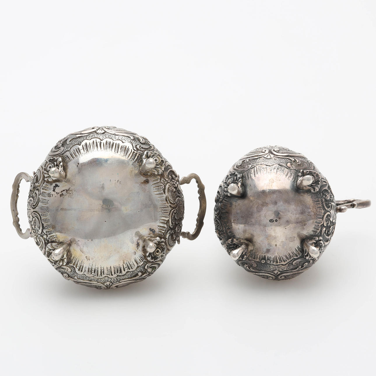 Gräddsnipa samt sockerskål, höjd 5 samt 6 cm.