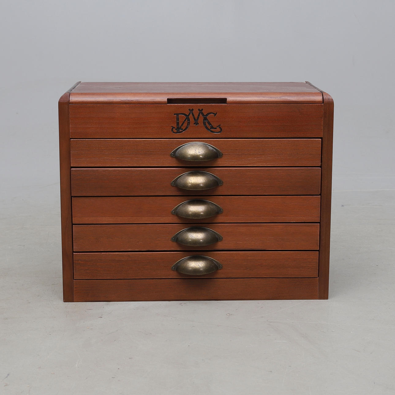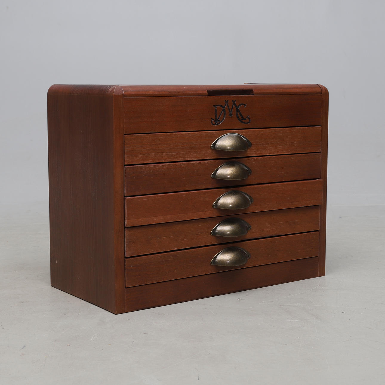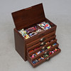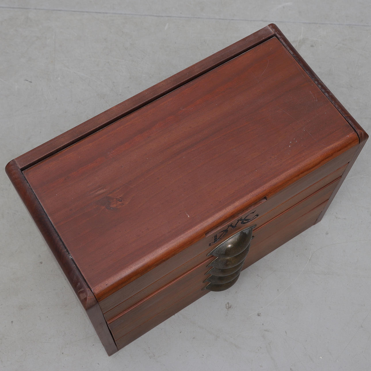 Med innehåll. Längd ca 46, bredd 23, höjd 36 cm.