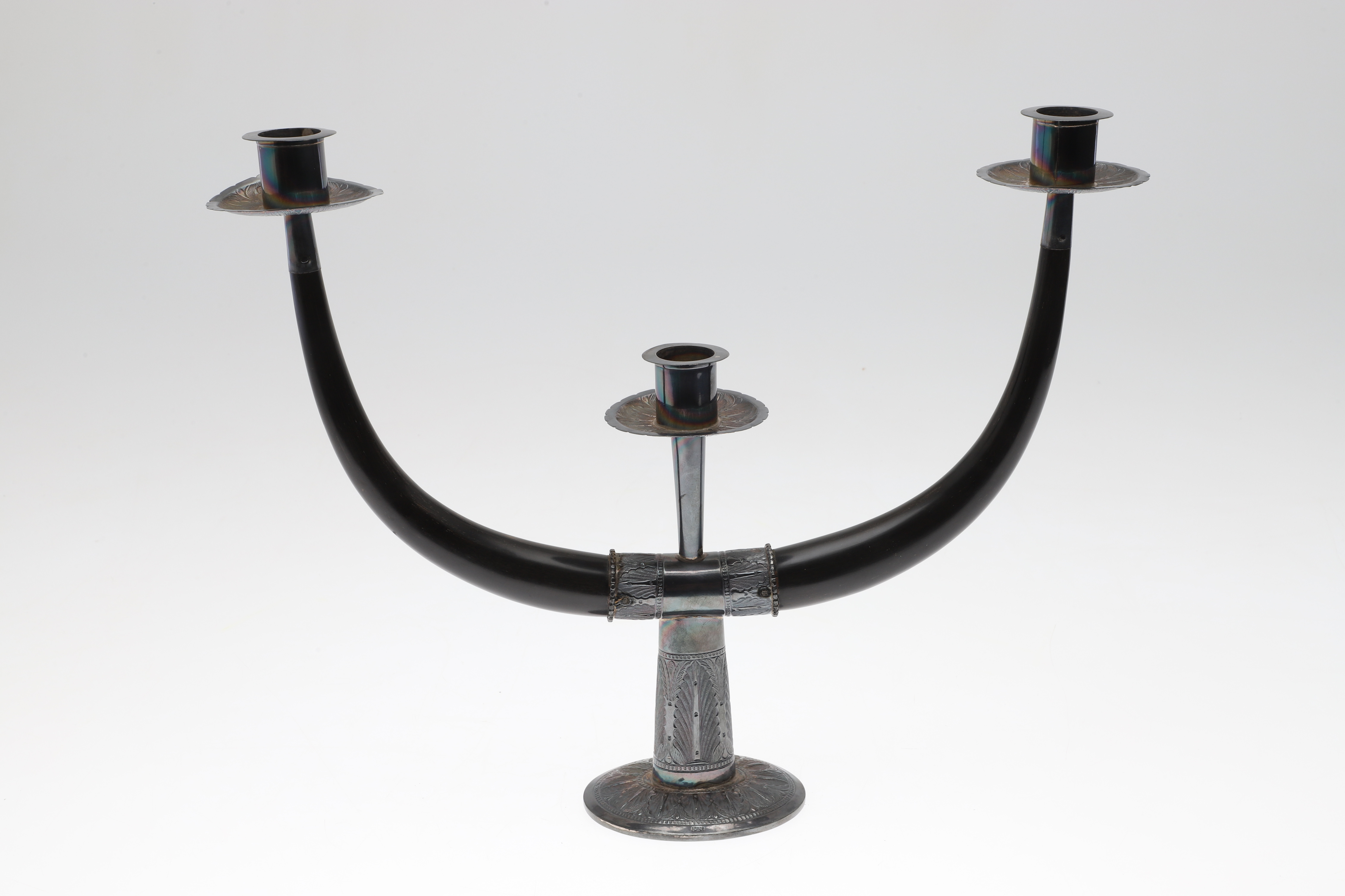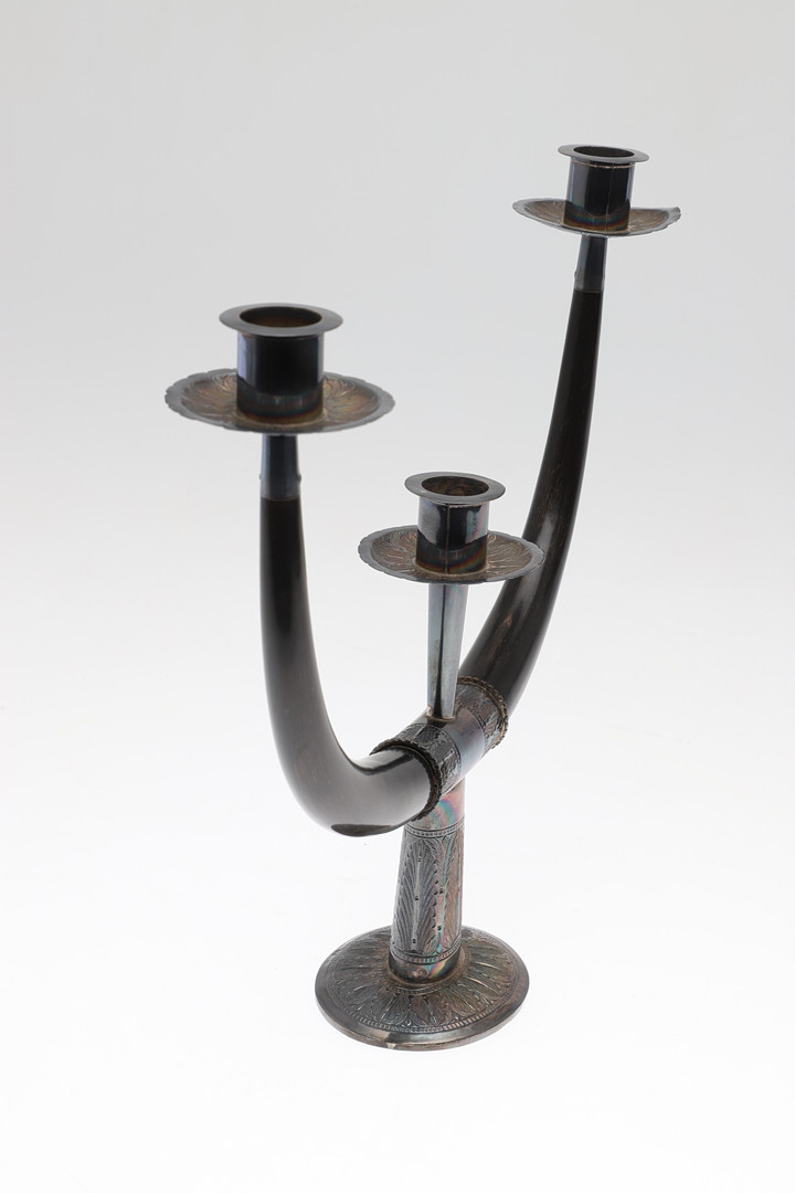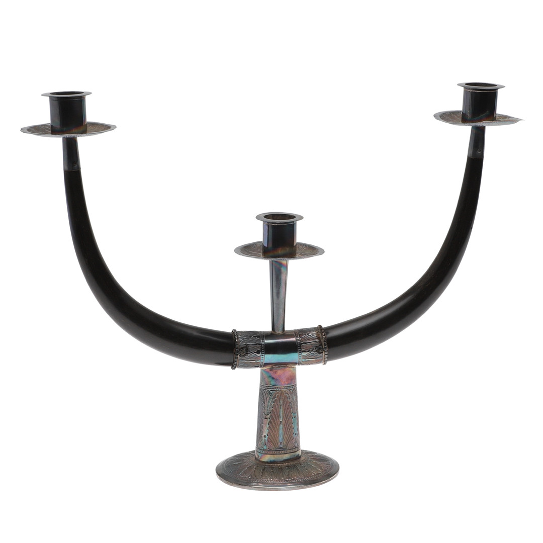 4986439. SILVERMONTERAD TREGRENAD KANDELABER.