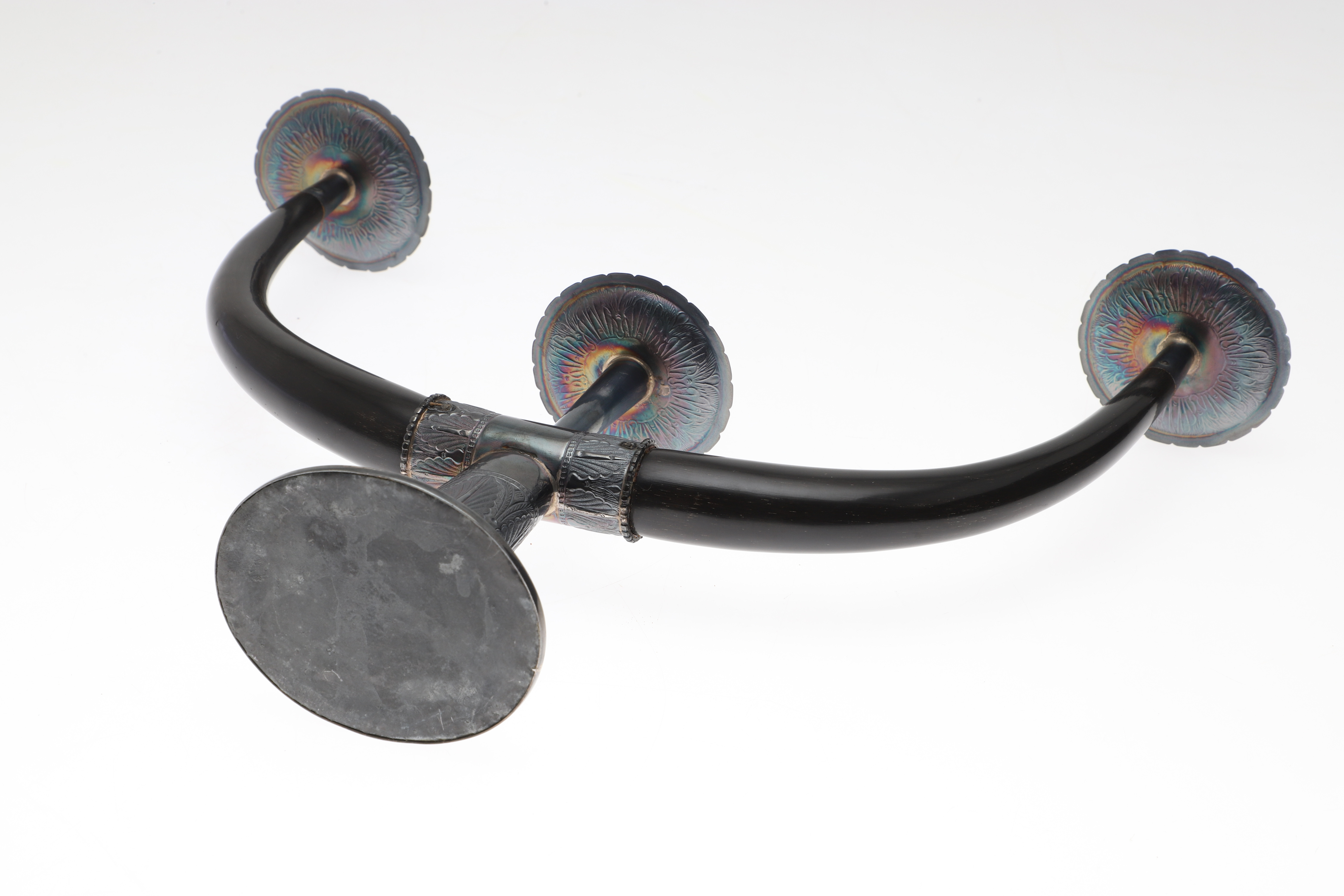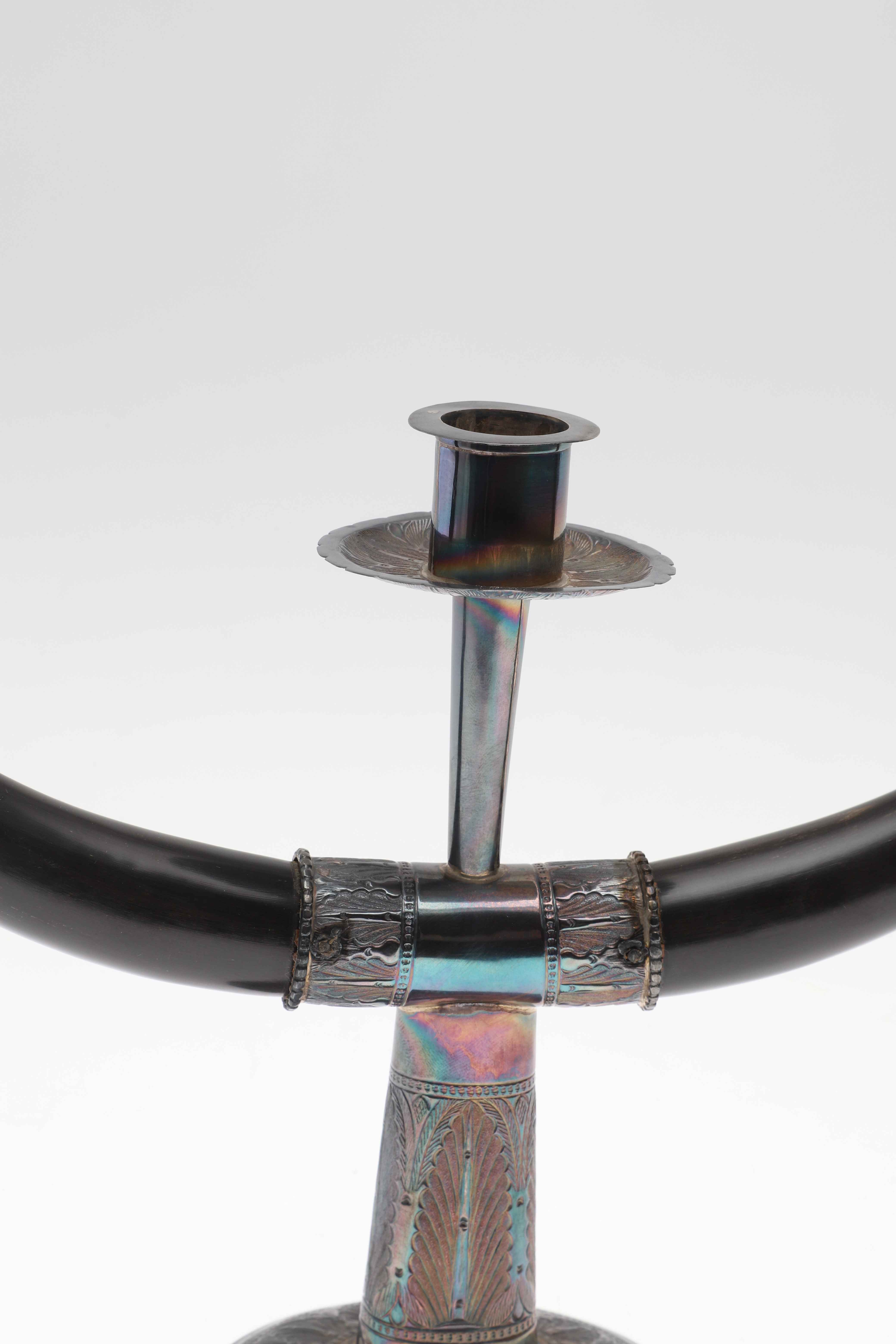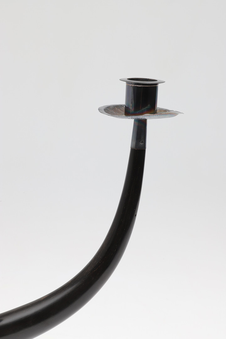 4986439. SILVERMONTERAD TREGRENAD KANDELABER.