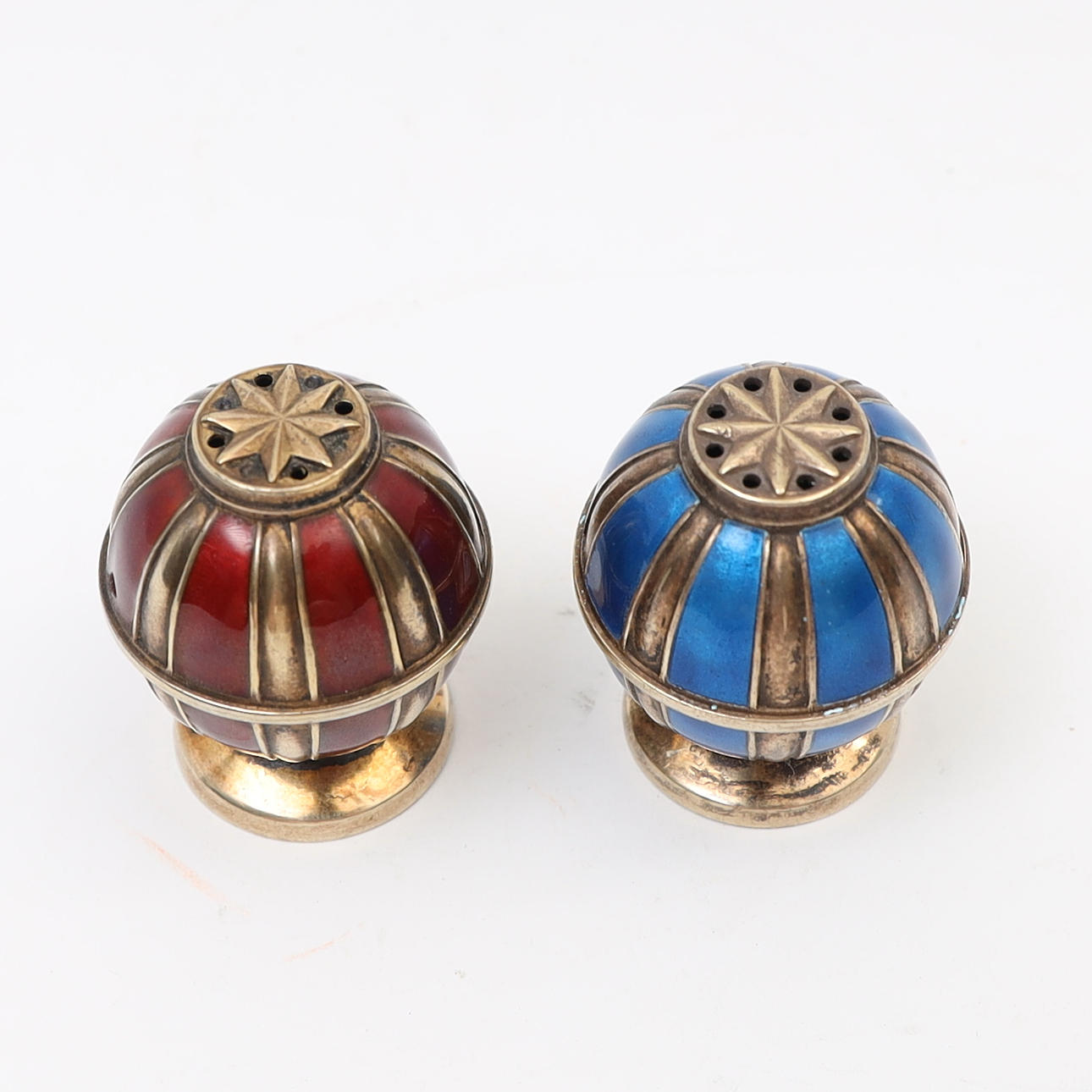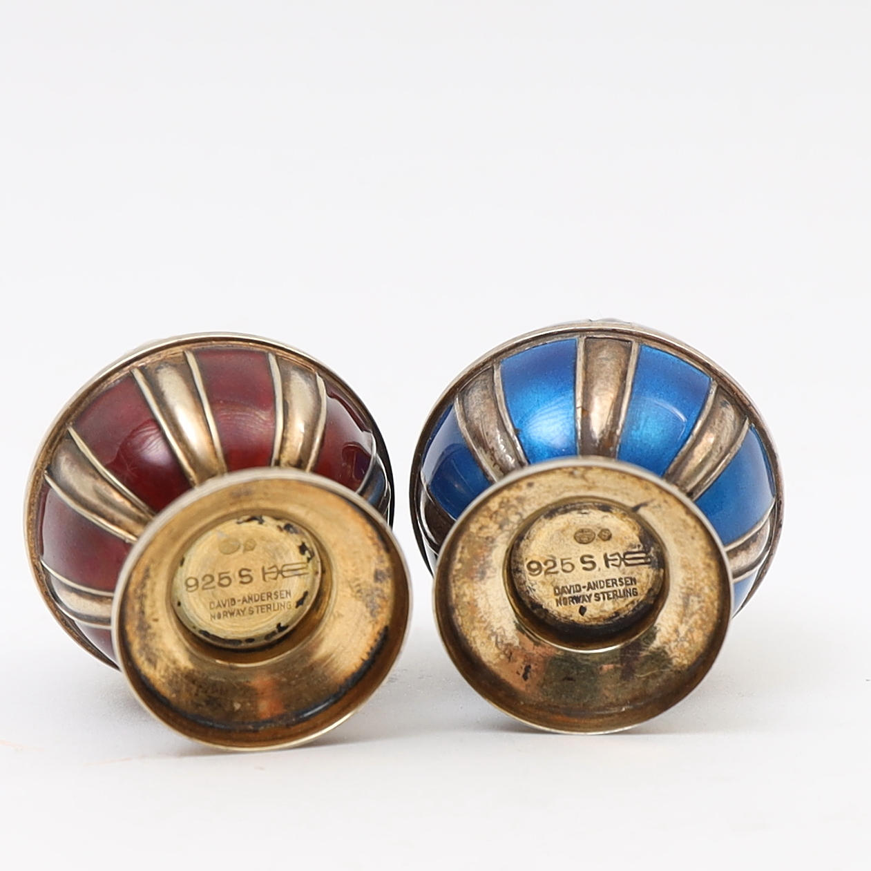 4986692. DAVID ANDERSSEN. Ströare ett par, sterlingsilver, David Andersen, Norge, med emaljerad dekor.