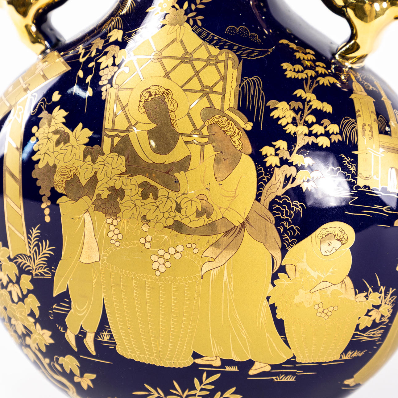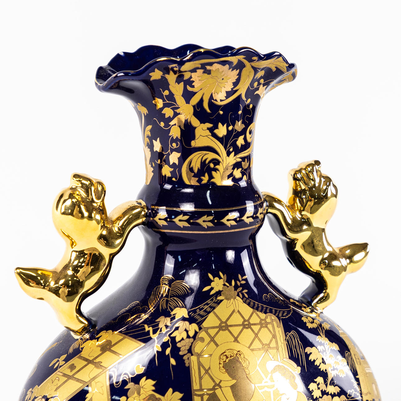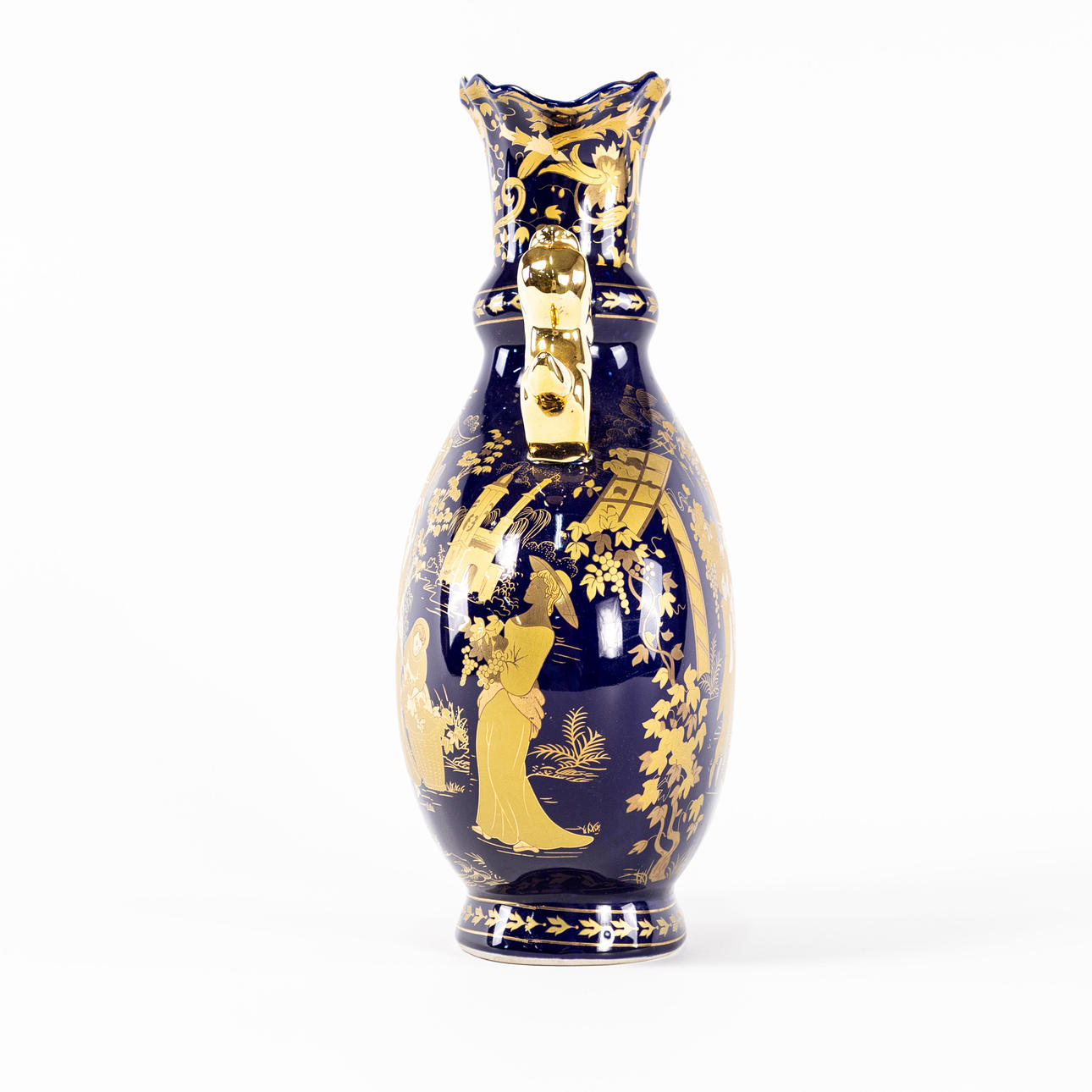 Hänkelvas, Koboltblå med gulddekor, 1900-tal, Kina, höjd 35 cm.