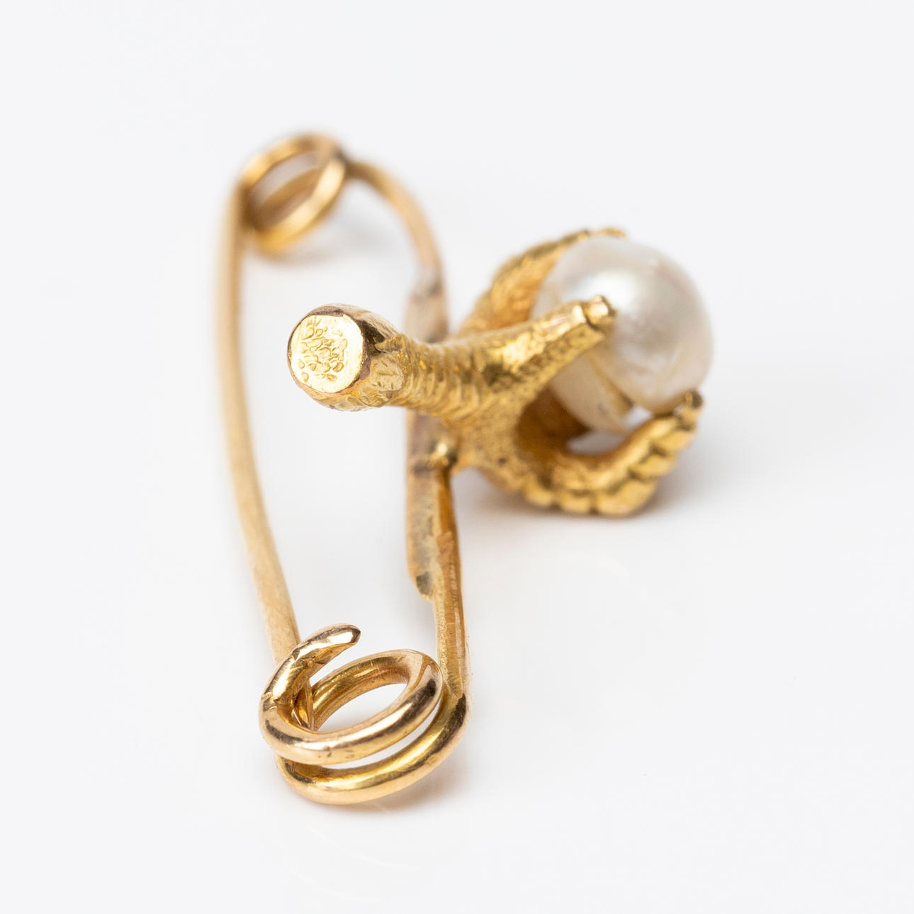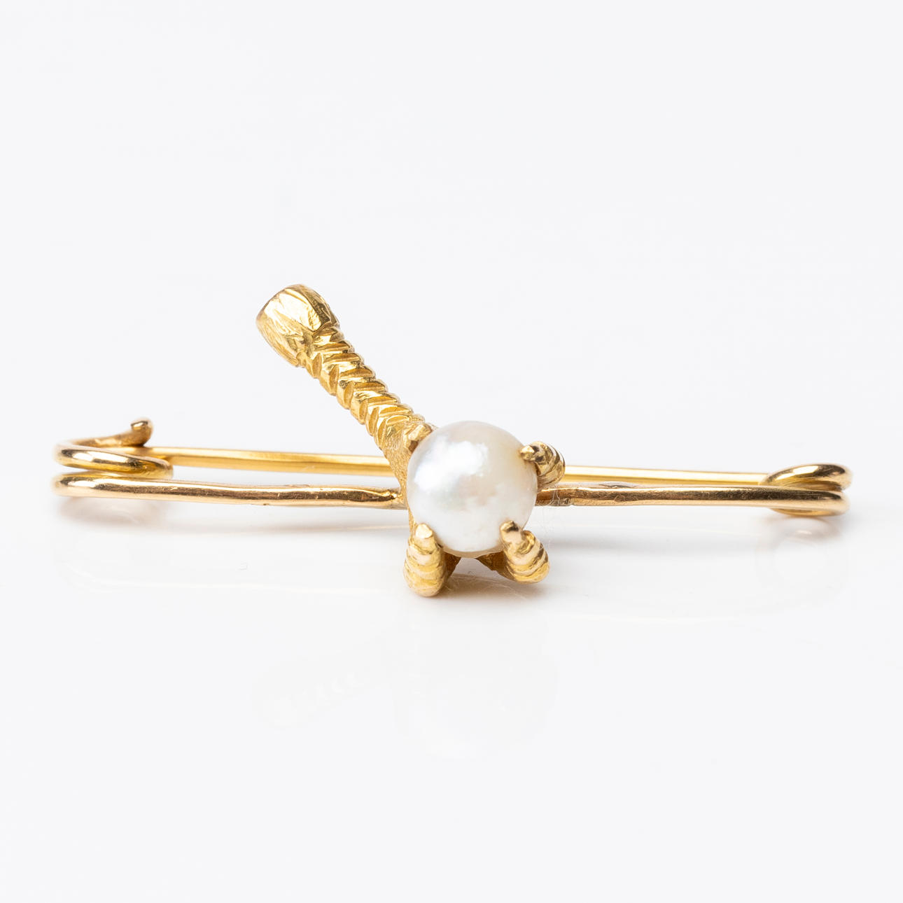 Säkerhetsnål med fågel ben/klor hållandes pärlan, längd ca 3,5 cm.