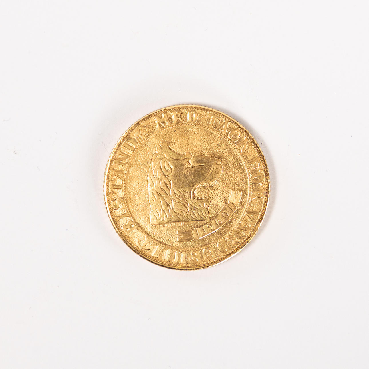 Minnesmynt, Regalskeppet Vasa, förgyllt, 1960, gravör Gösta Cardell, diameter ca 32 mm, kommer i etui.