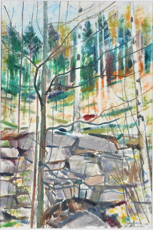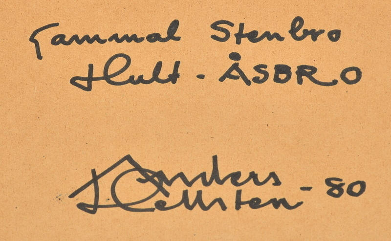 Gammal stenbro Hult-Åsbro. Signerad samt a tergo daterad -80