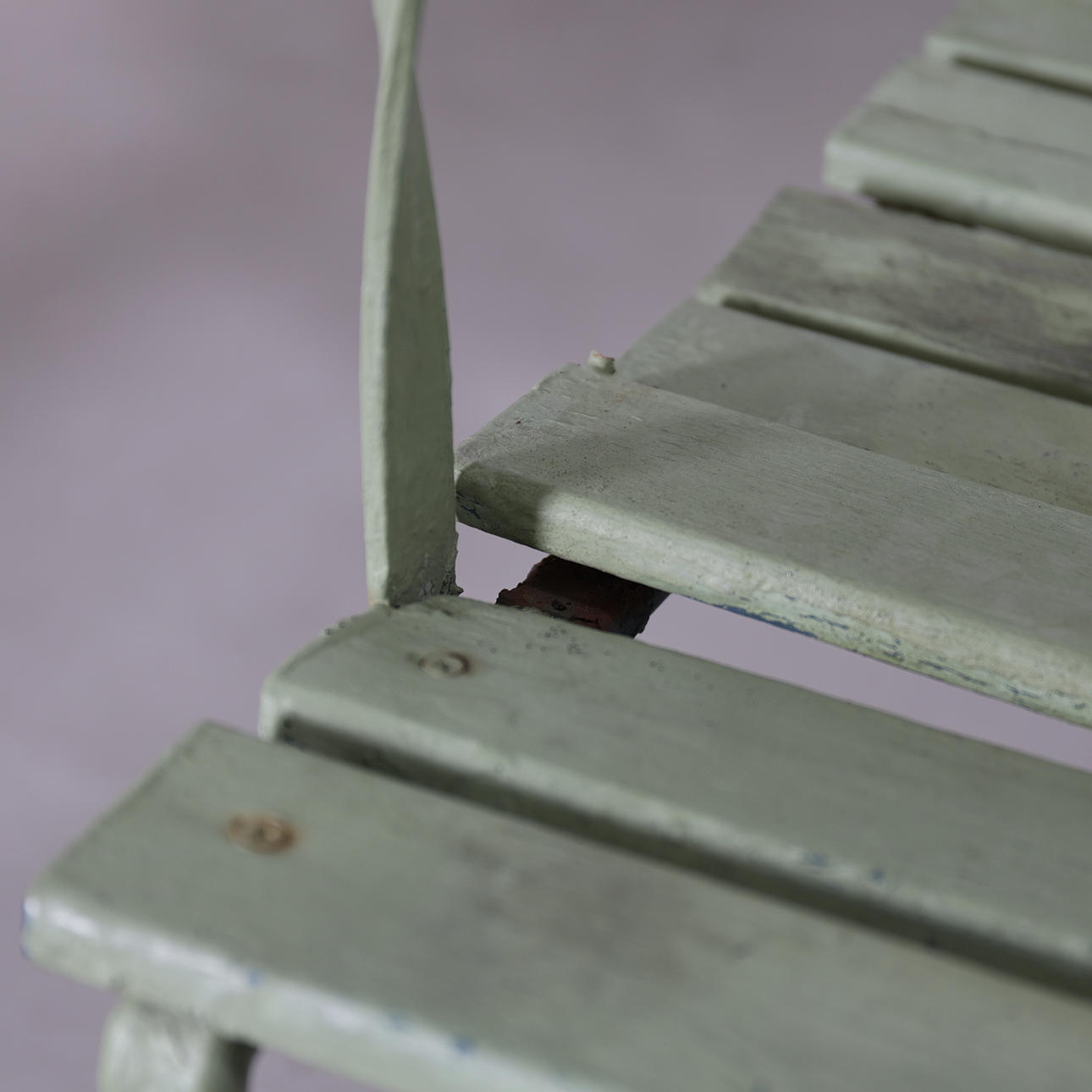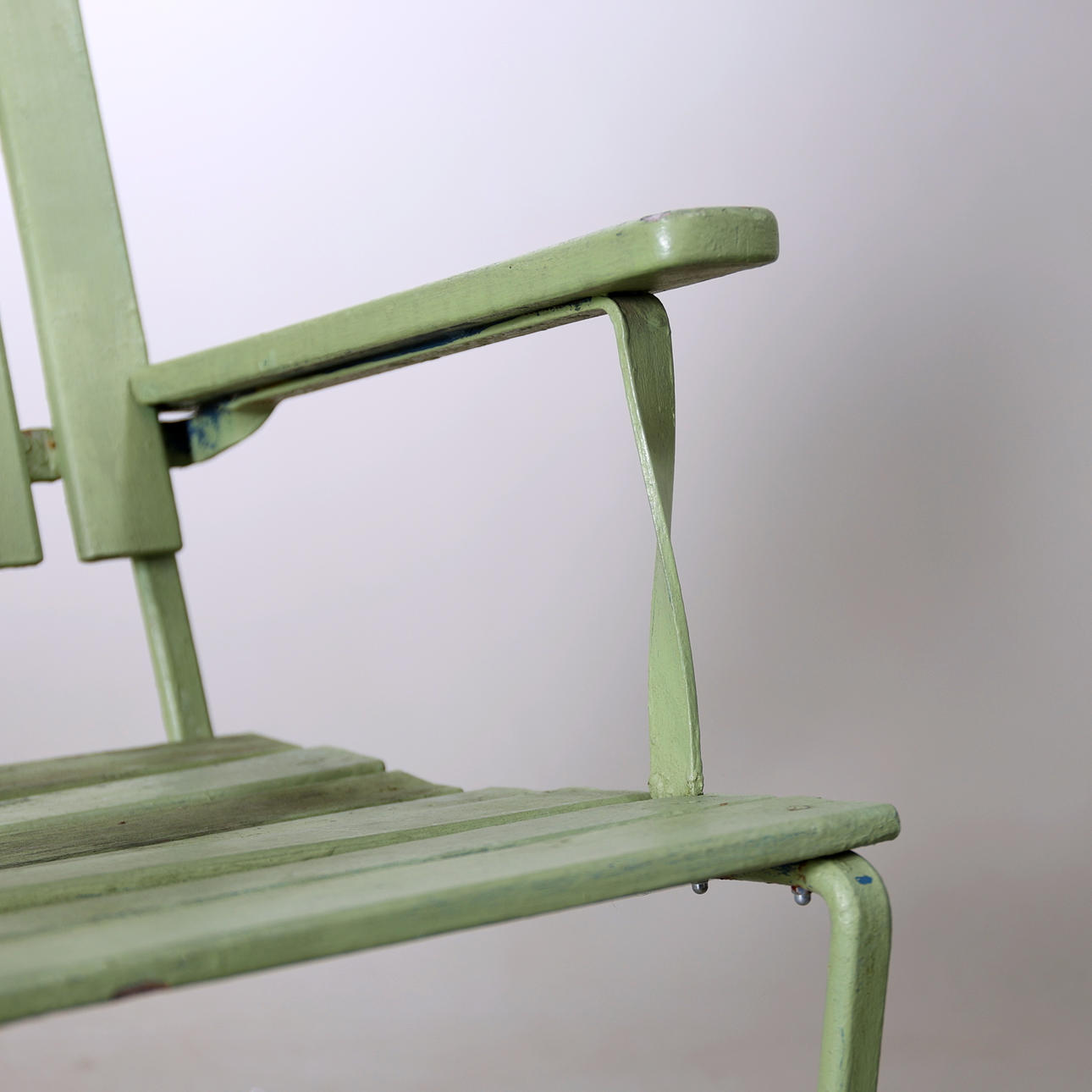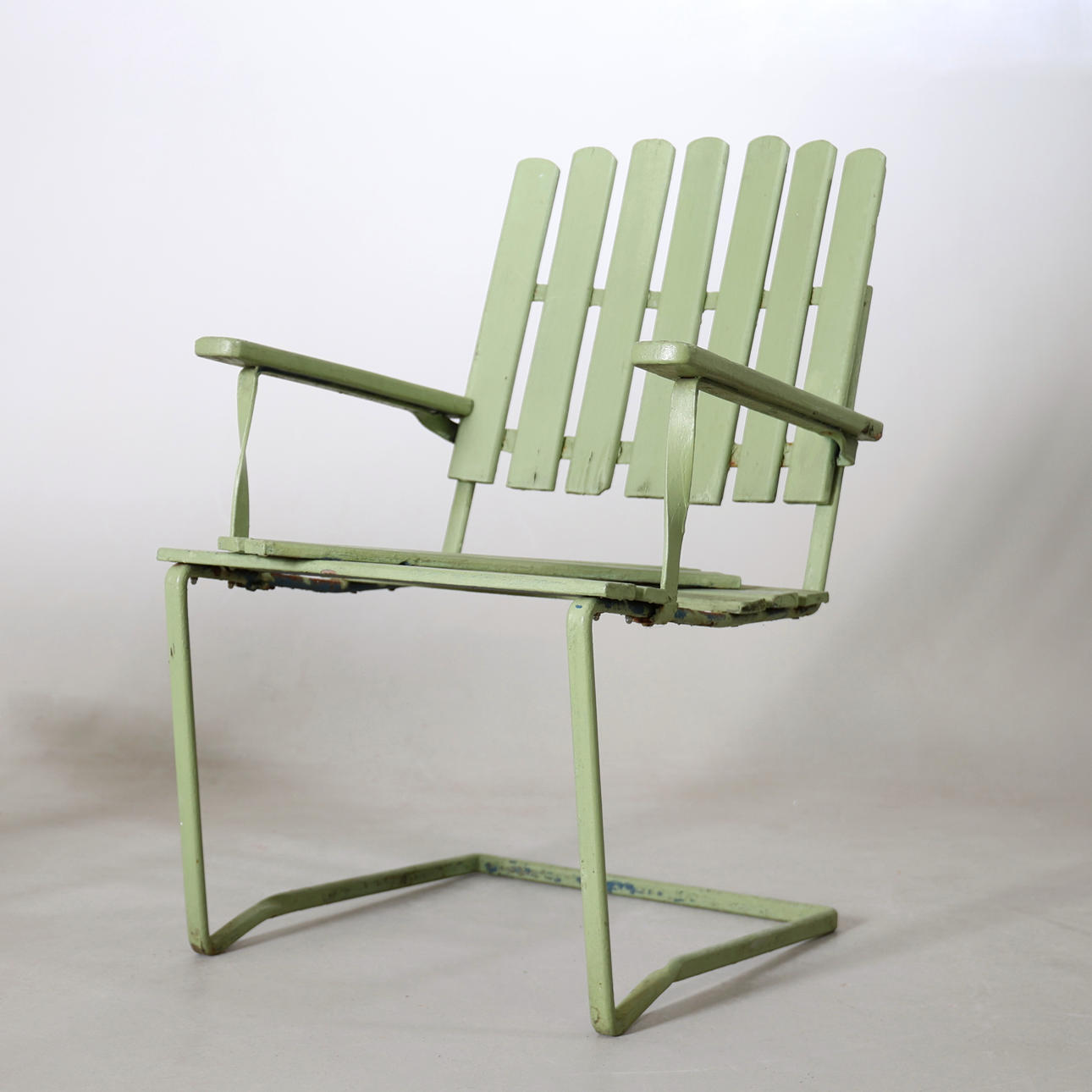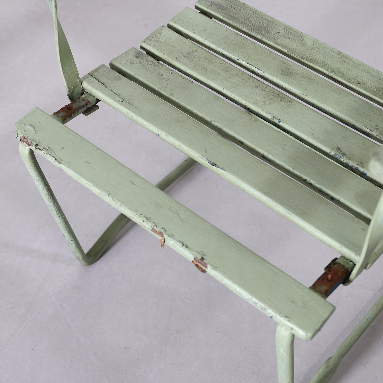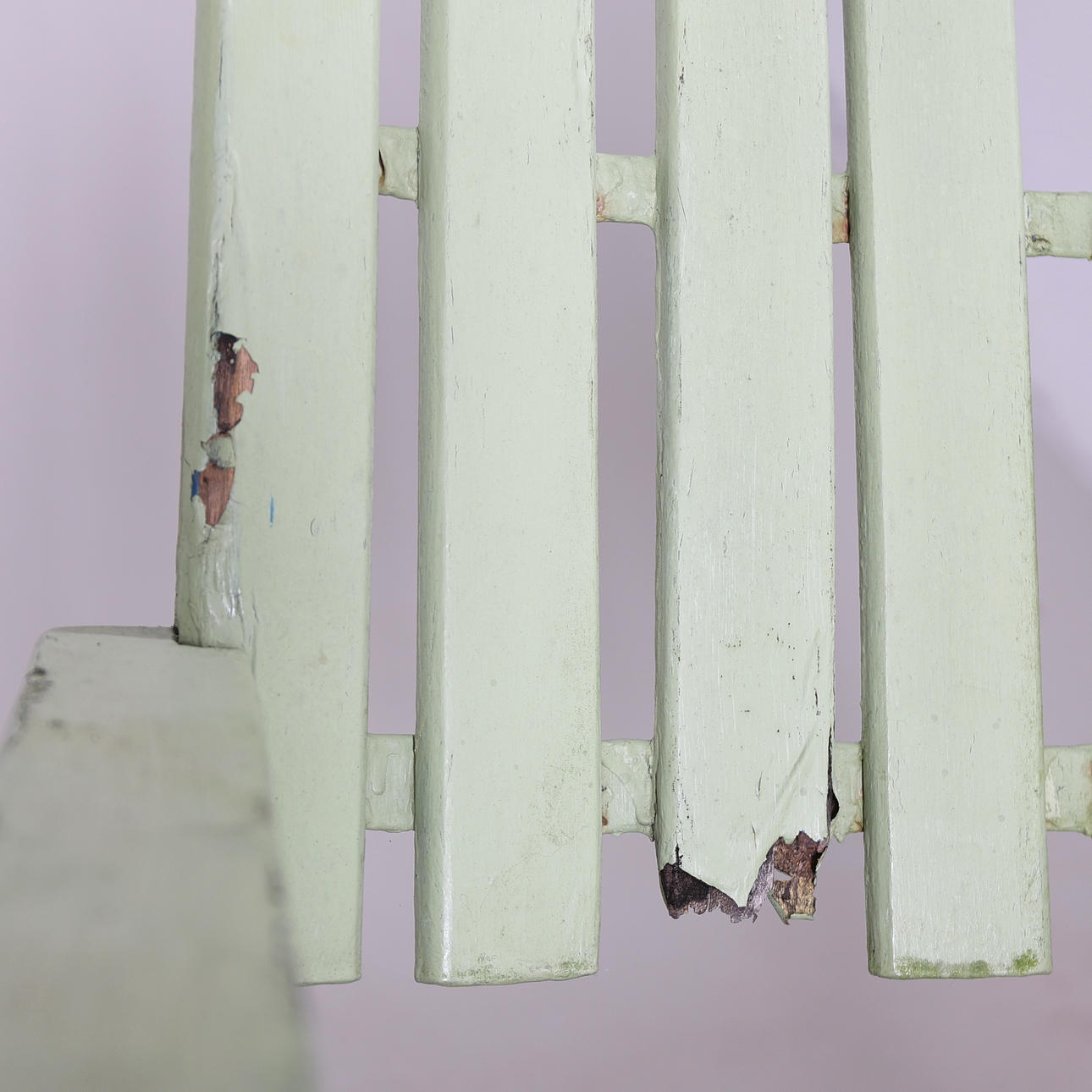 Renoveringsobjekt. Bruksslitage. Repor, fläckar och rost. Senare bemålade. Flera lösa ribbor samt flera murkna.