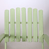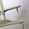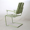 Bord och två karmstolar. Stomme i metall. Ribbor av trä.