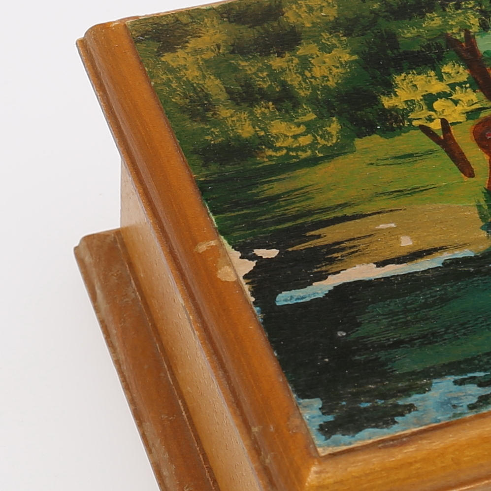 Skrin med hjortar, höjd 5,5, längd 16 cm.