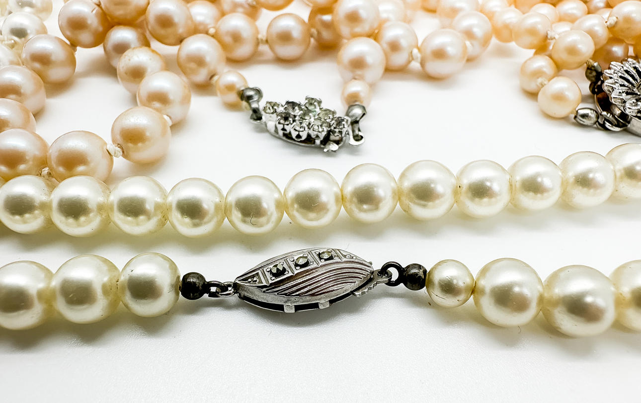 4987853. PÄRLCOLLIER & ARMBAND, 5 delar.