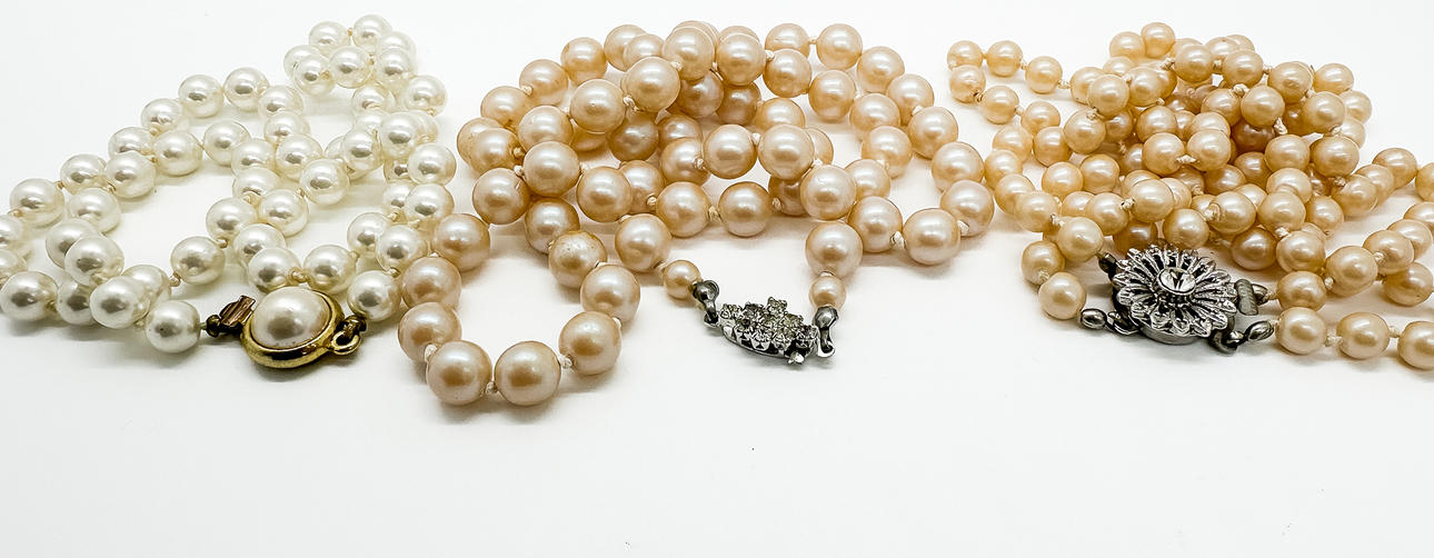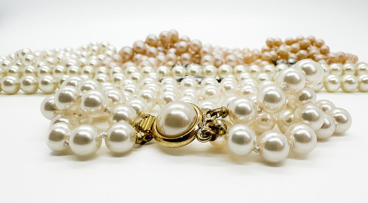 PÄRLCOLLIER & ARMBAND, 5 delar.