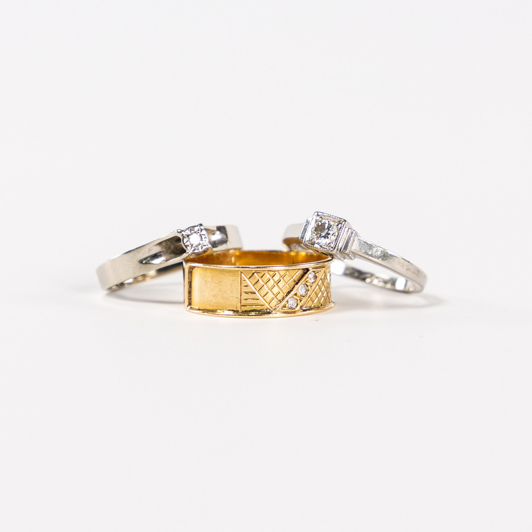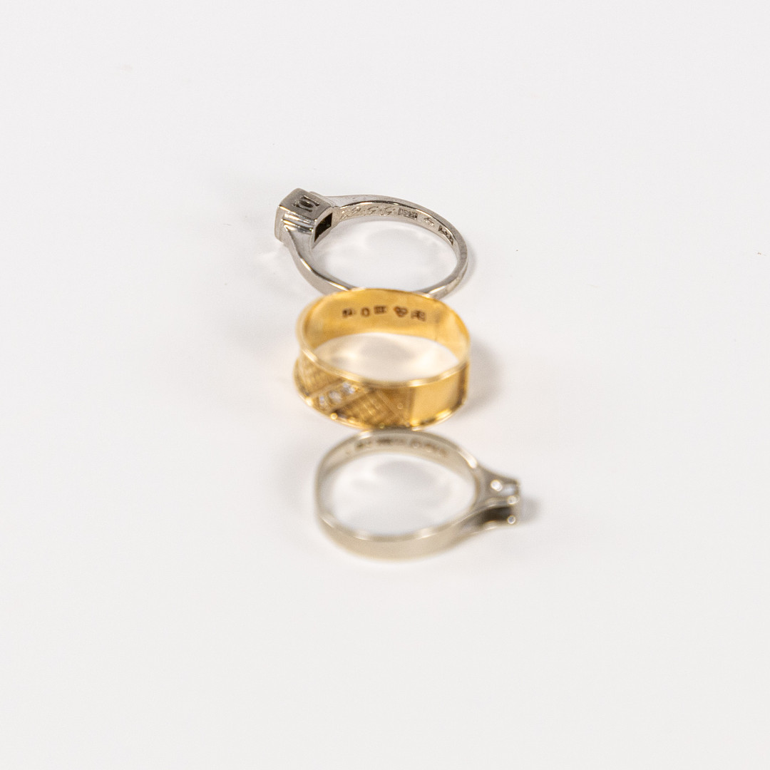 4988063. RINGAR, 3 st, 18k guld, briljanter.