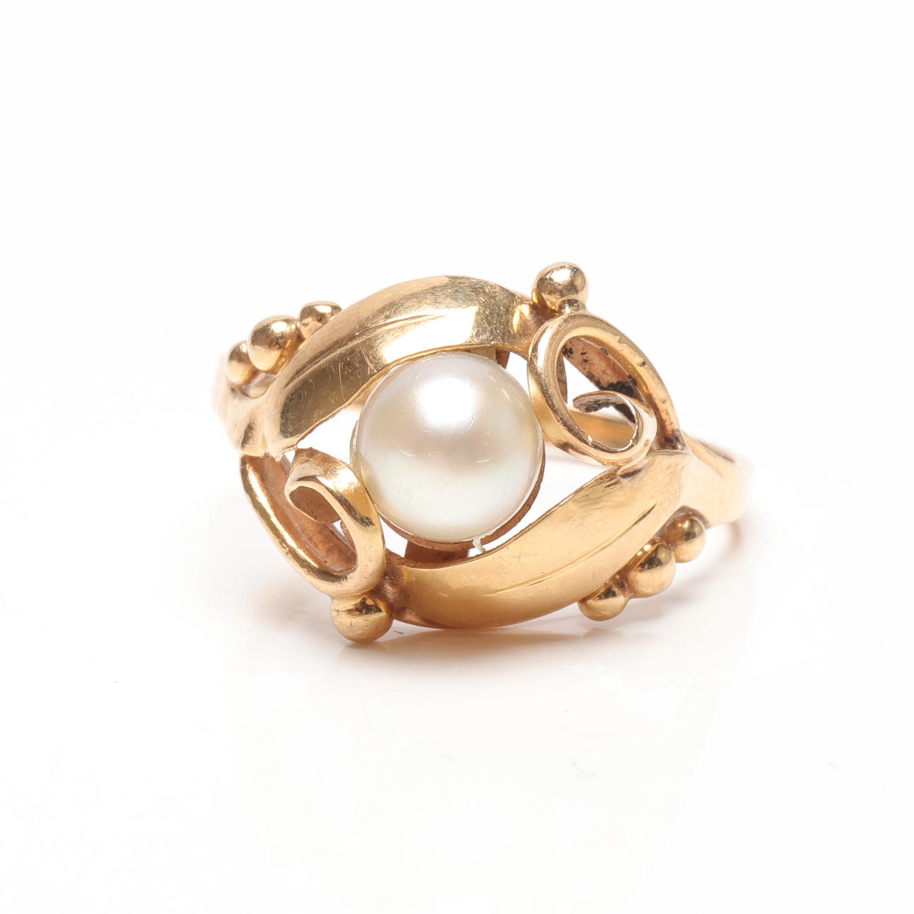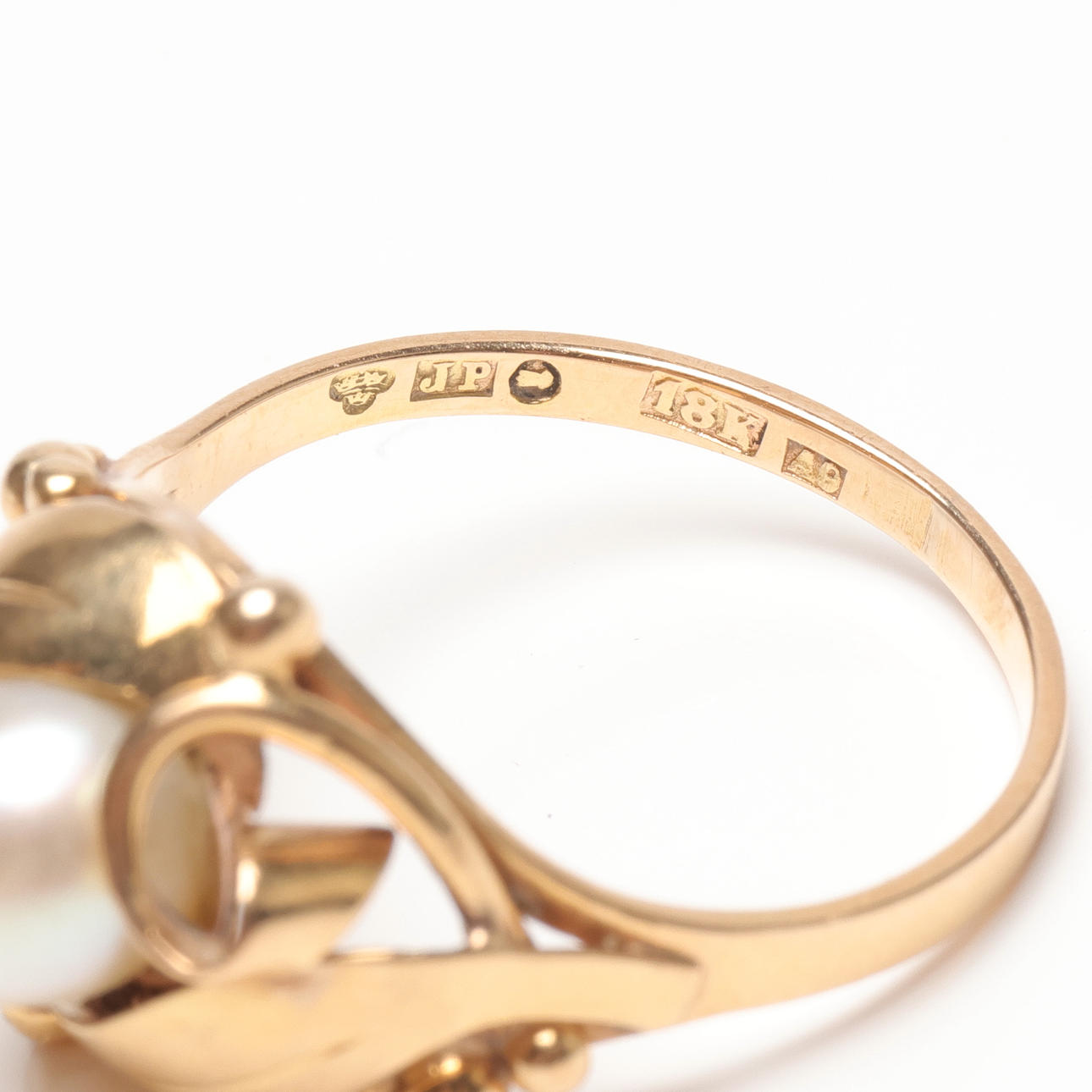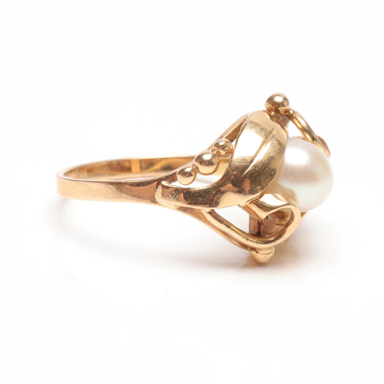 4988543. RING, 18k guld med pärla, vikt ca 3,8 gram.