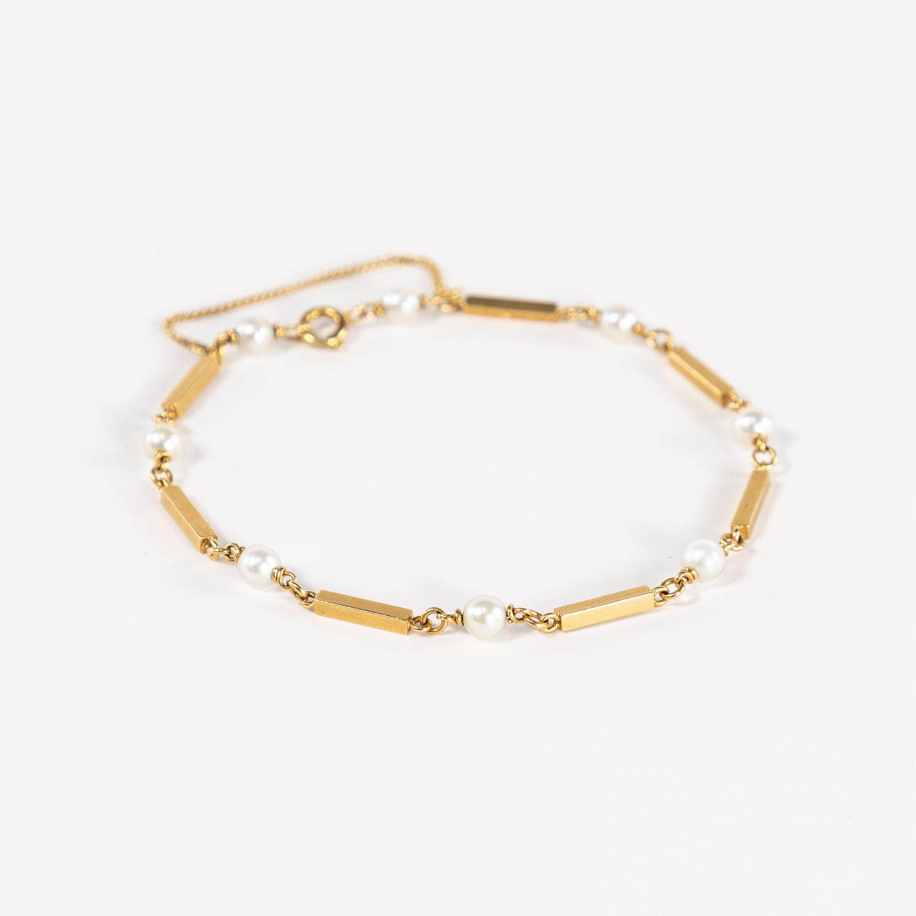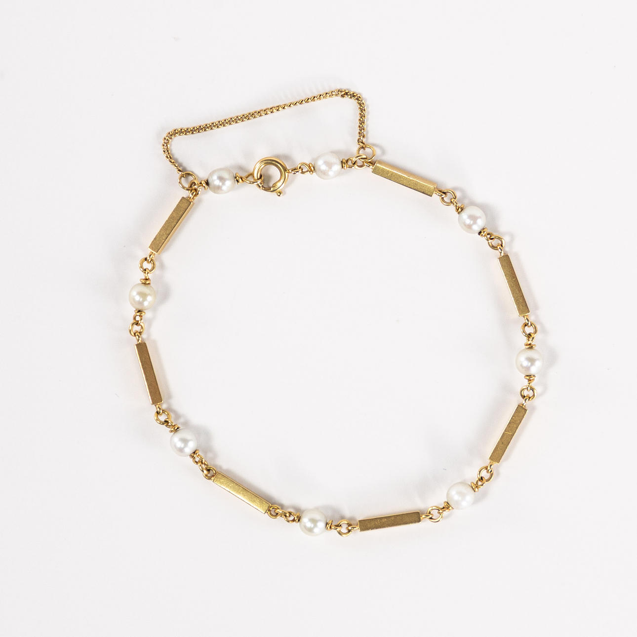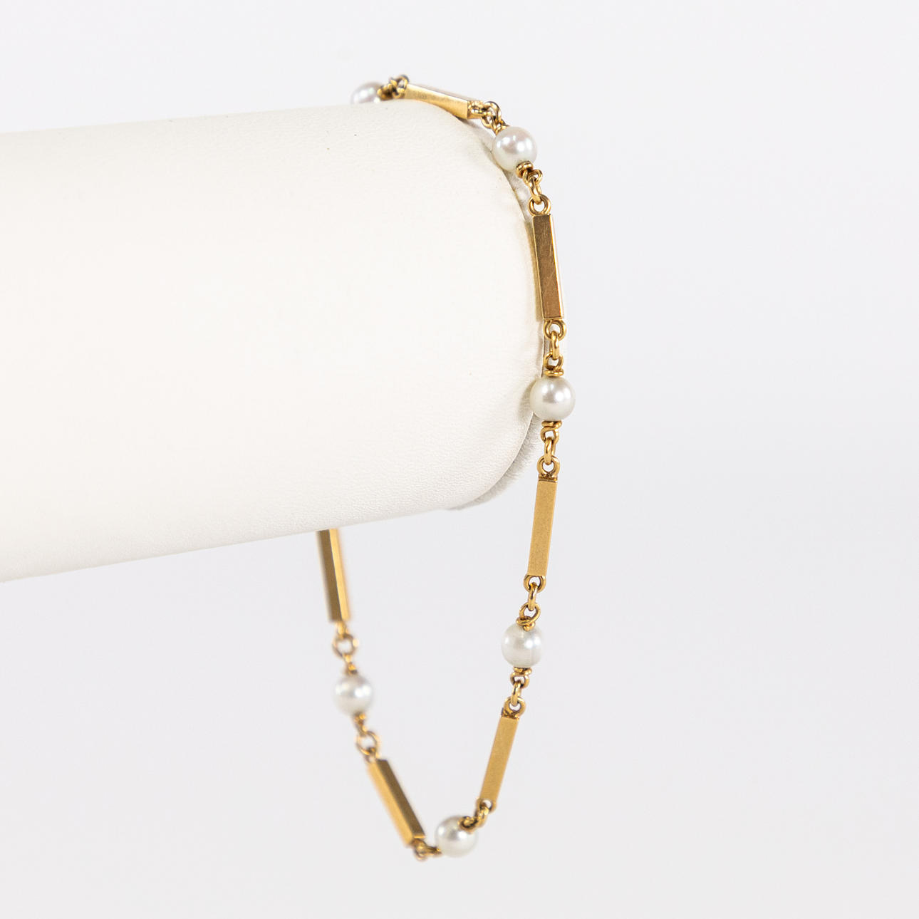 Armband, 18k guld och pärlor, längd 22 cm, vikt 7,1 gram.