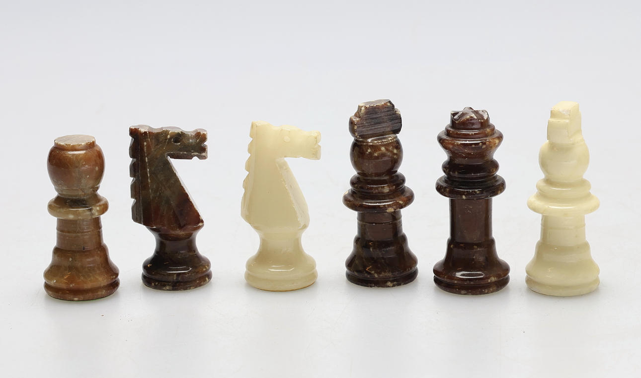 Bruksslitage samt spricka på bräde. Mindre avslag förekommer på spelpjäser.