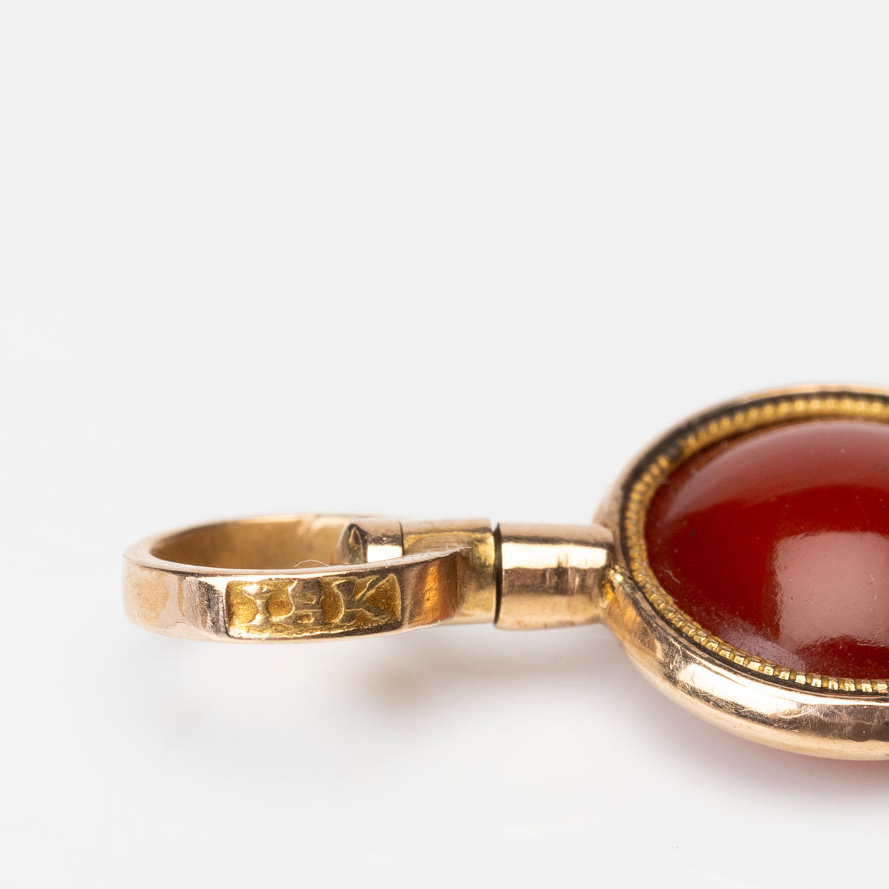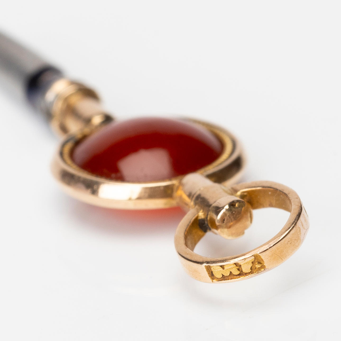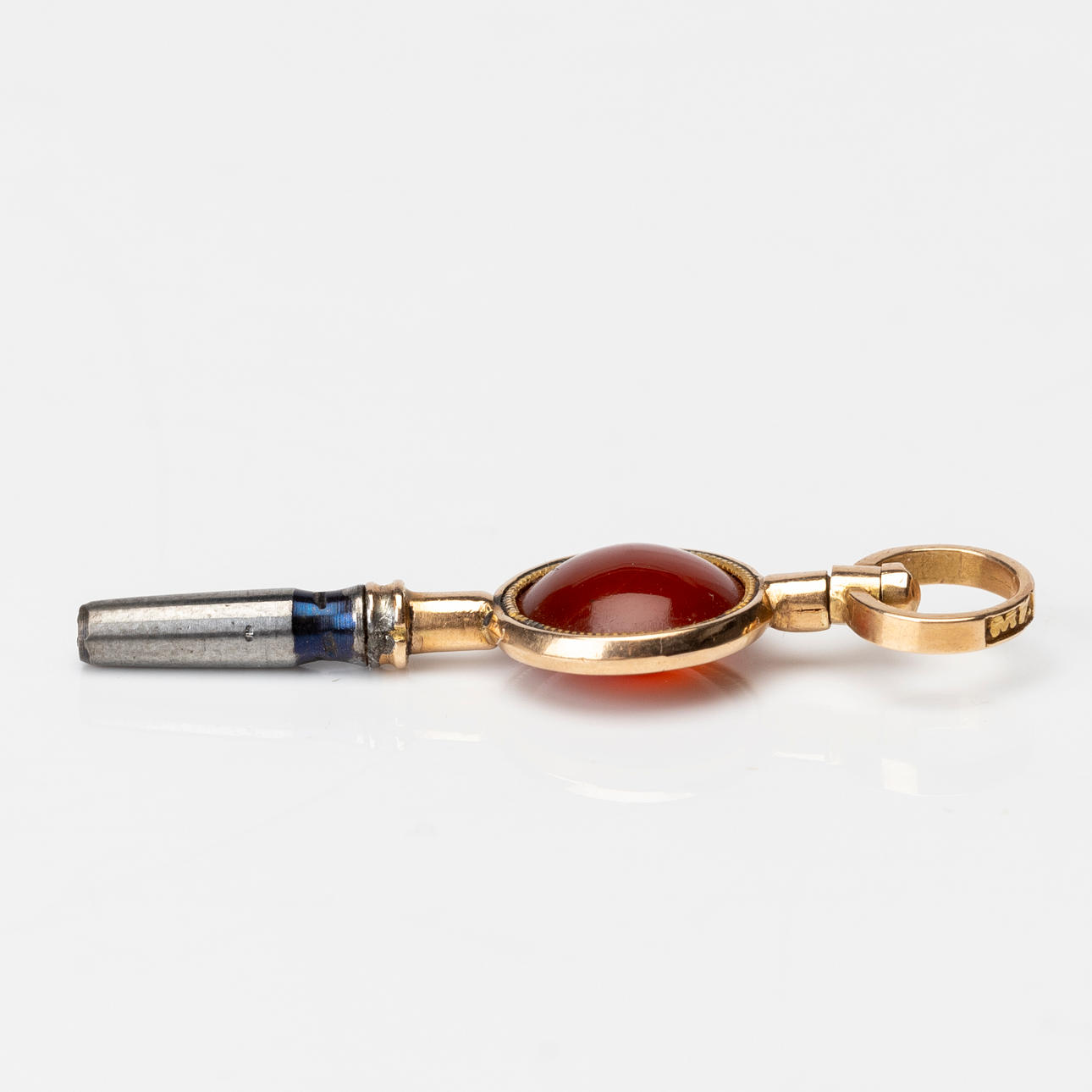 4989308. NYCKEL, guld, 18K samt metall och orange sten.