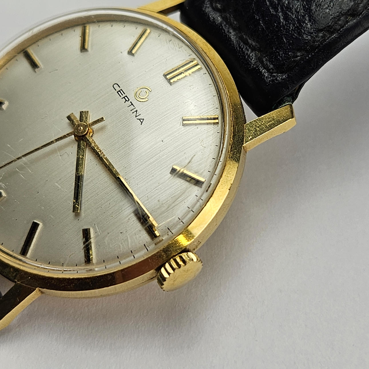 Manuell, läderarmband. Ca. 33 mm.