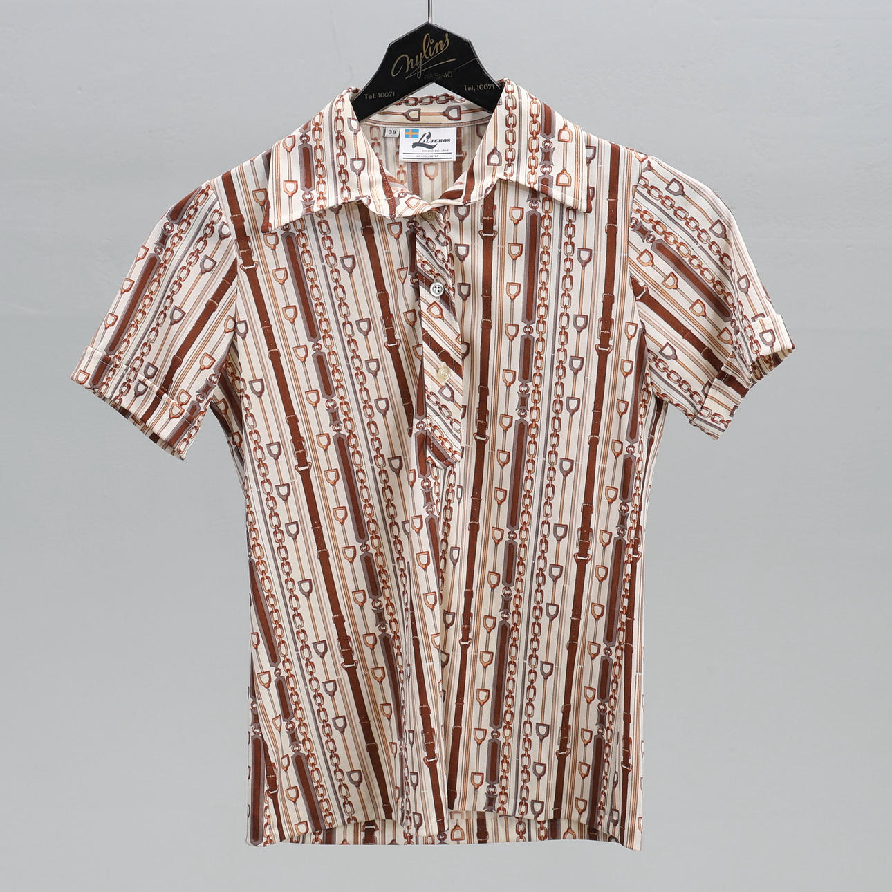 Blus, LILJEROS, Swedish Exclusive, mönstrad med hästdekor, Storlek 38.