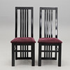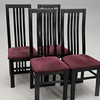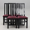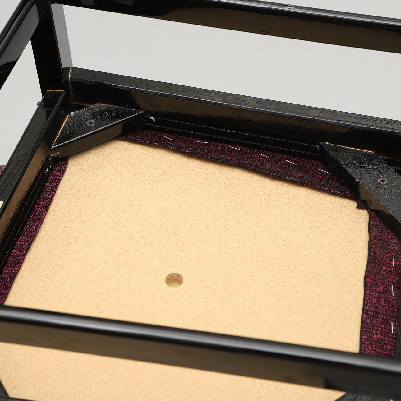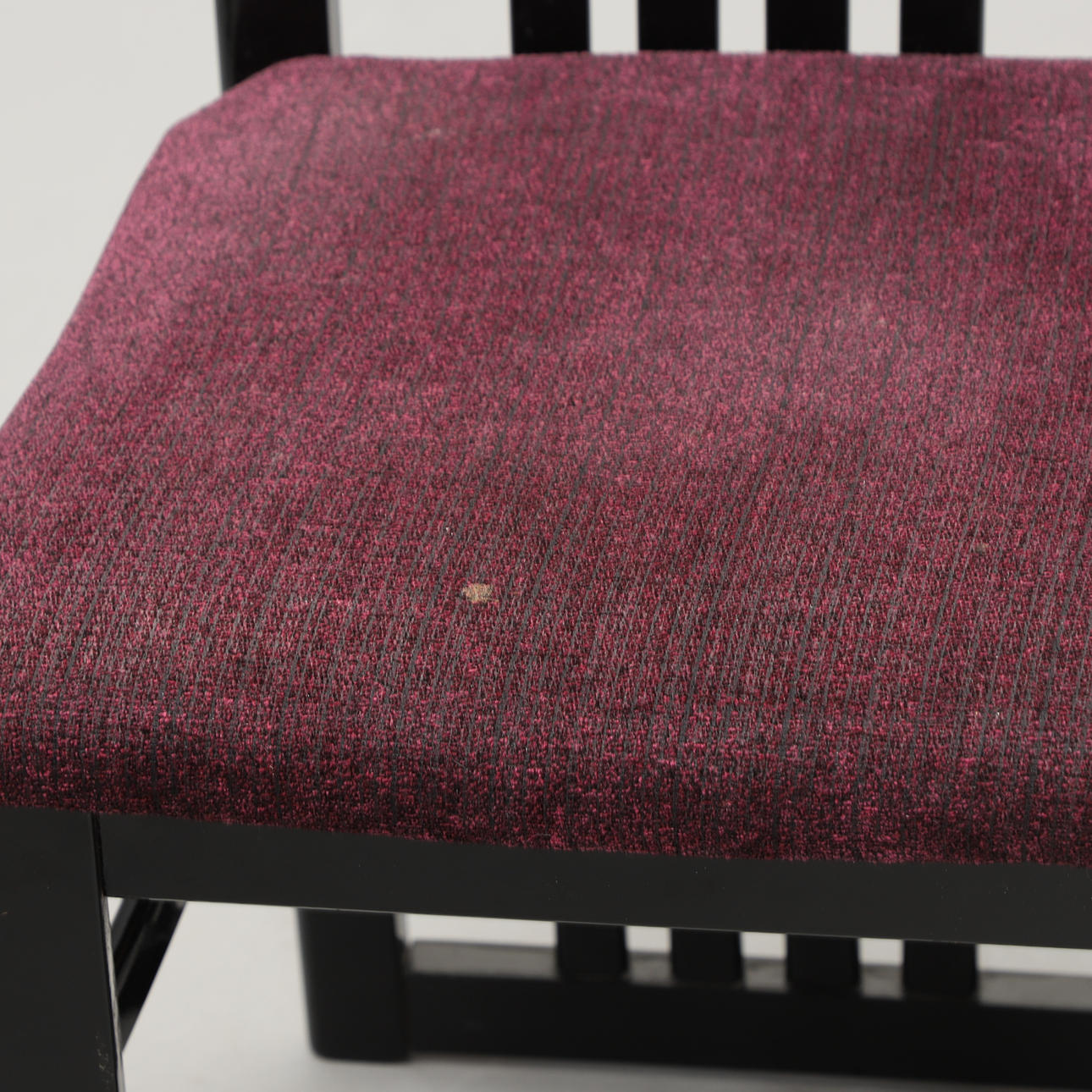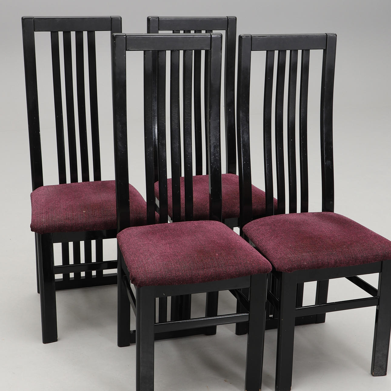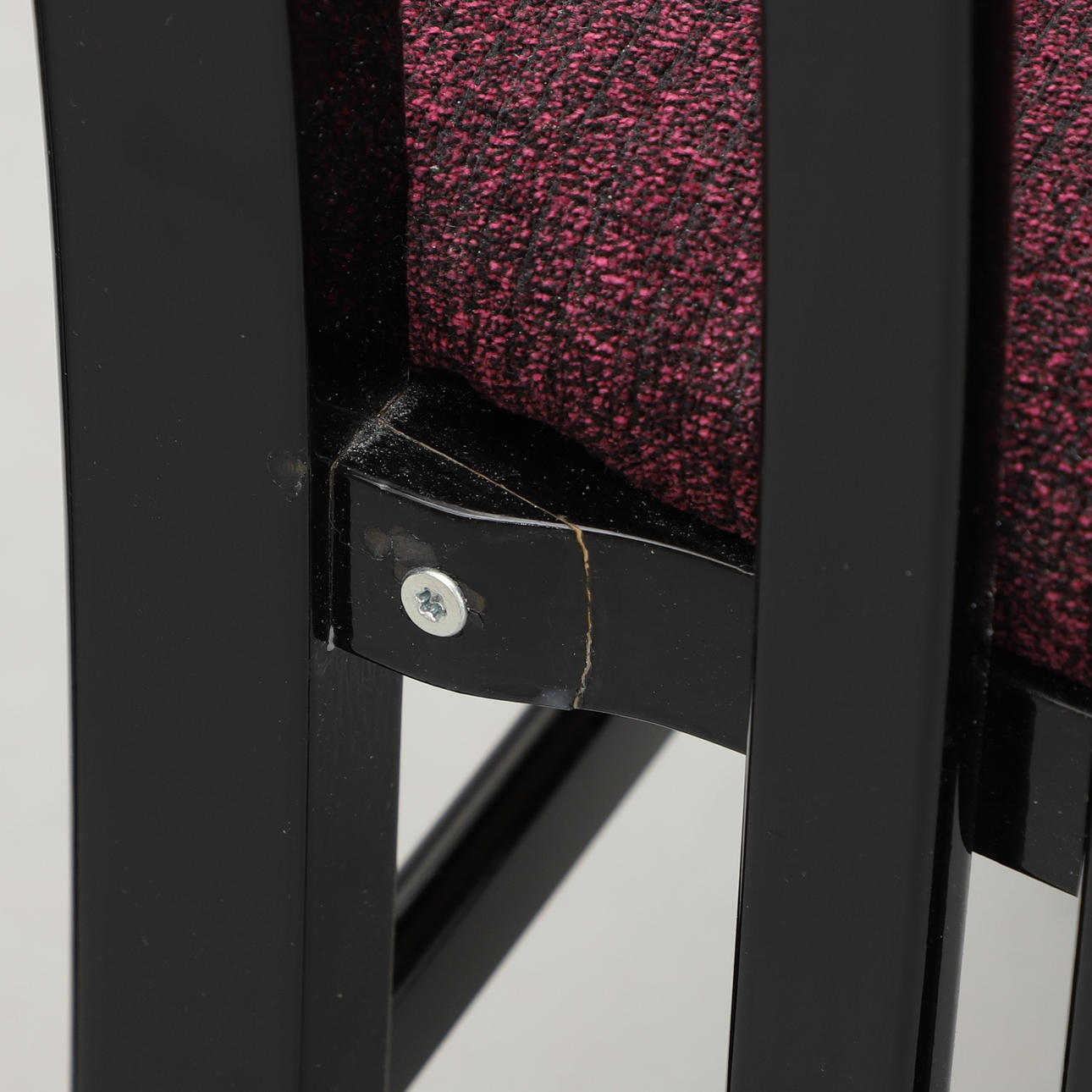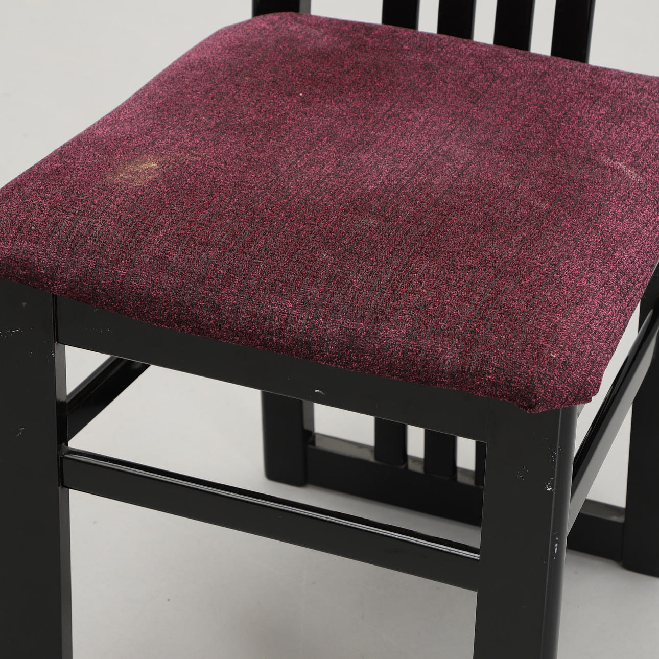 Stomme i svartlackerat trä. Tygklädda sitsar.