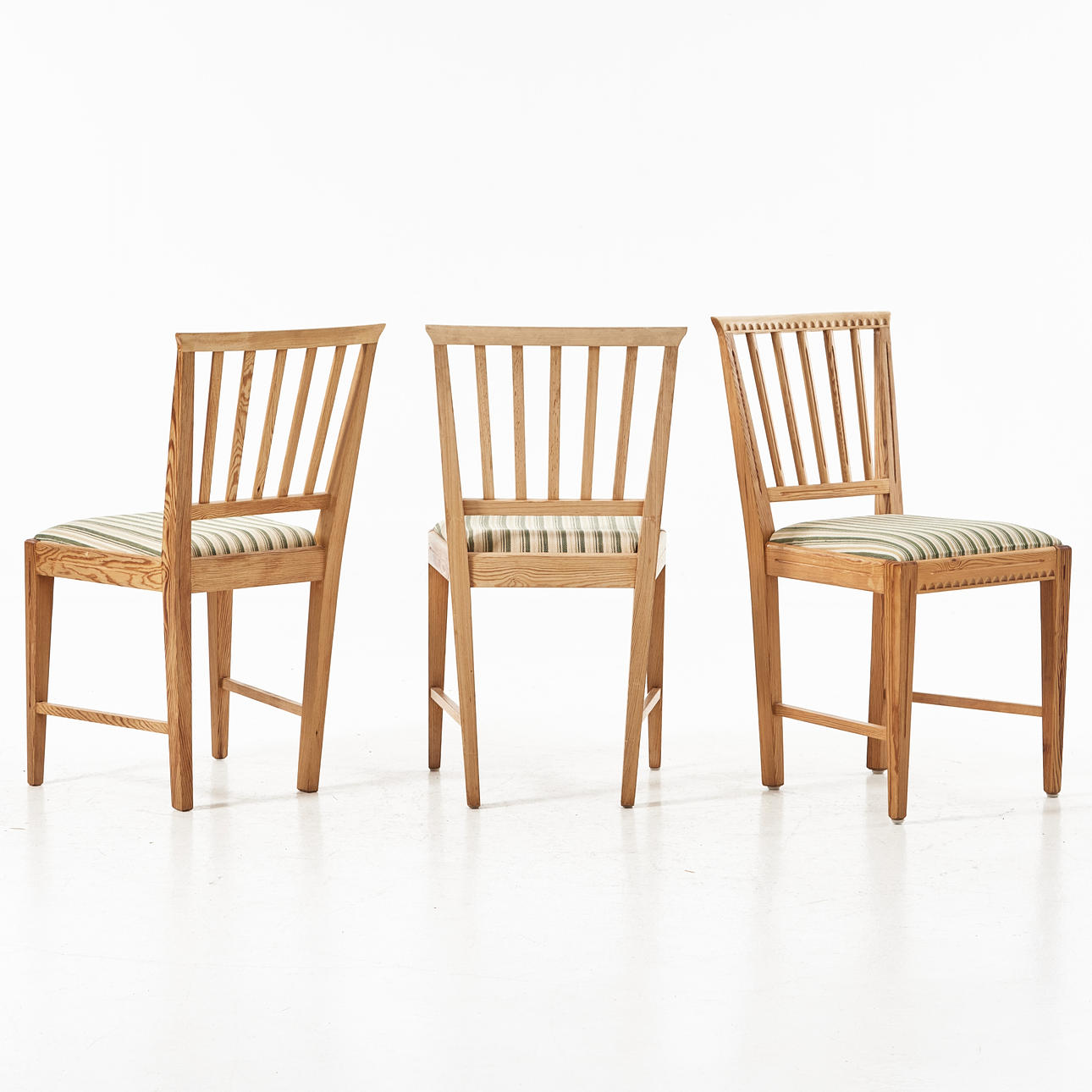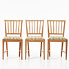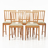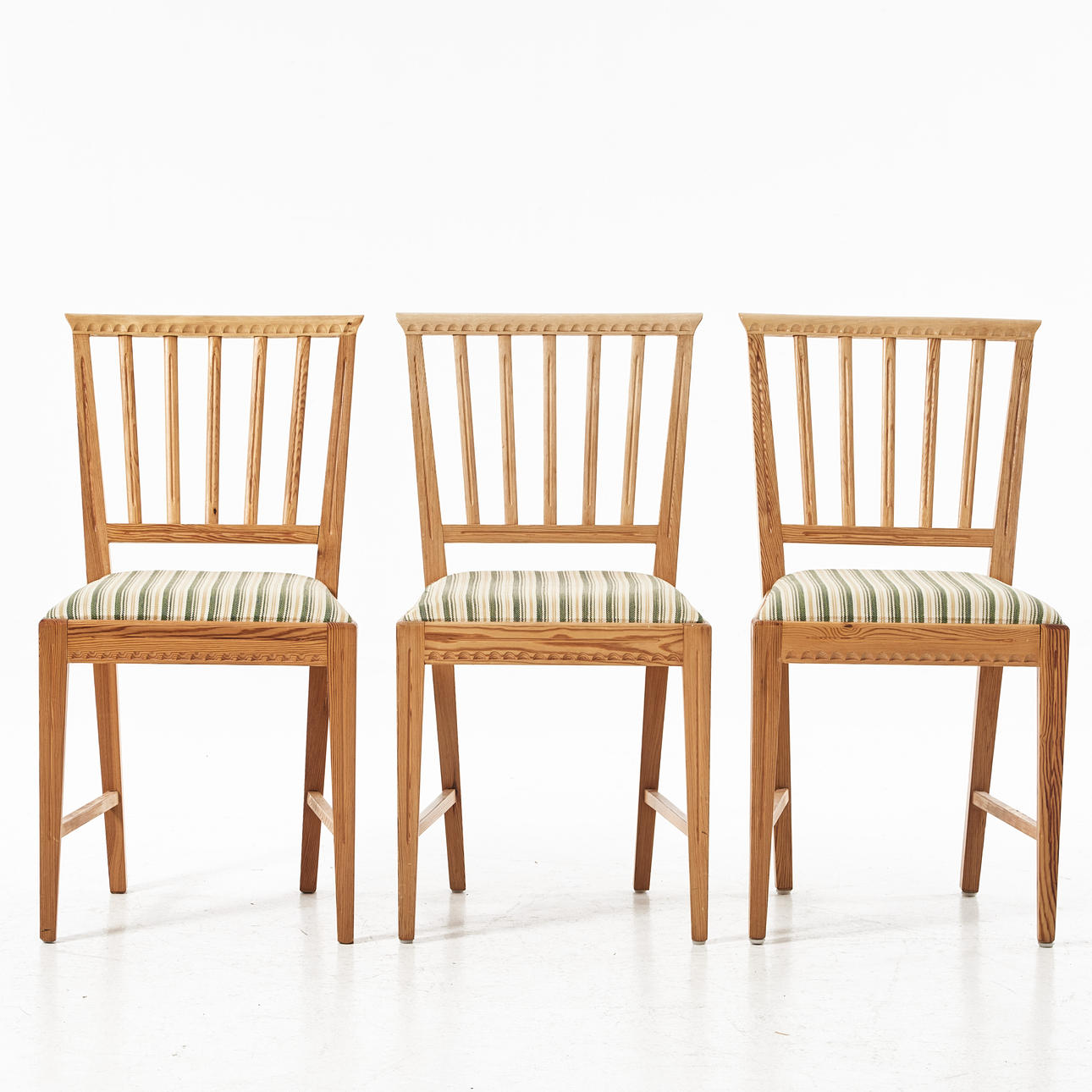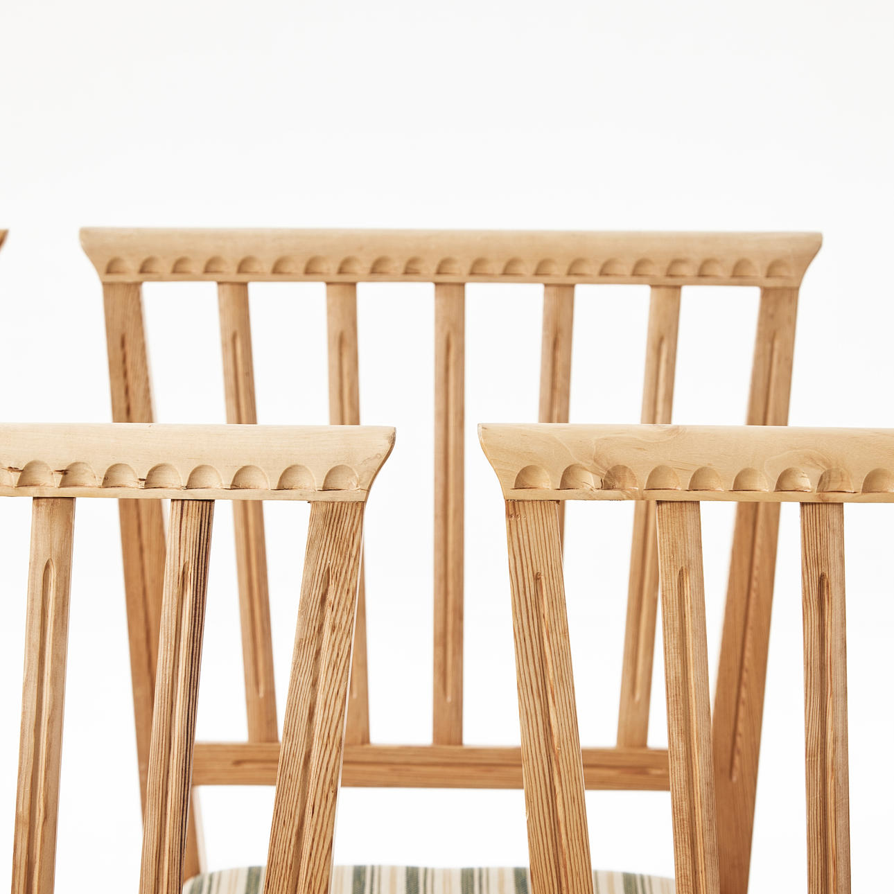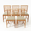 Delvis skuren dekor, kannelerade ben, enligt uppgift inköpta på Gotland, sitthöjd 47, rygghöjd 84 cm.