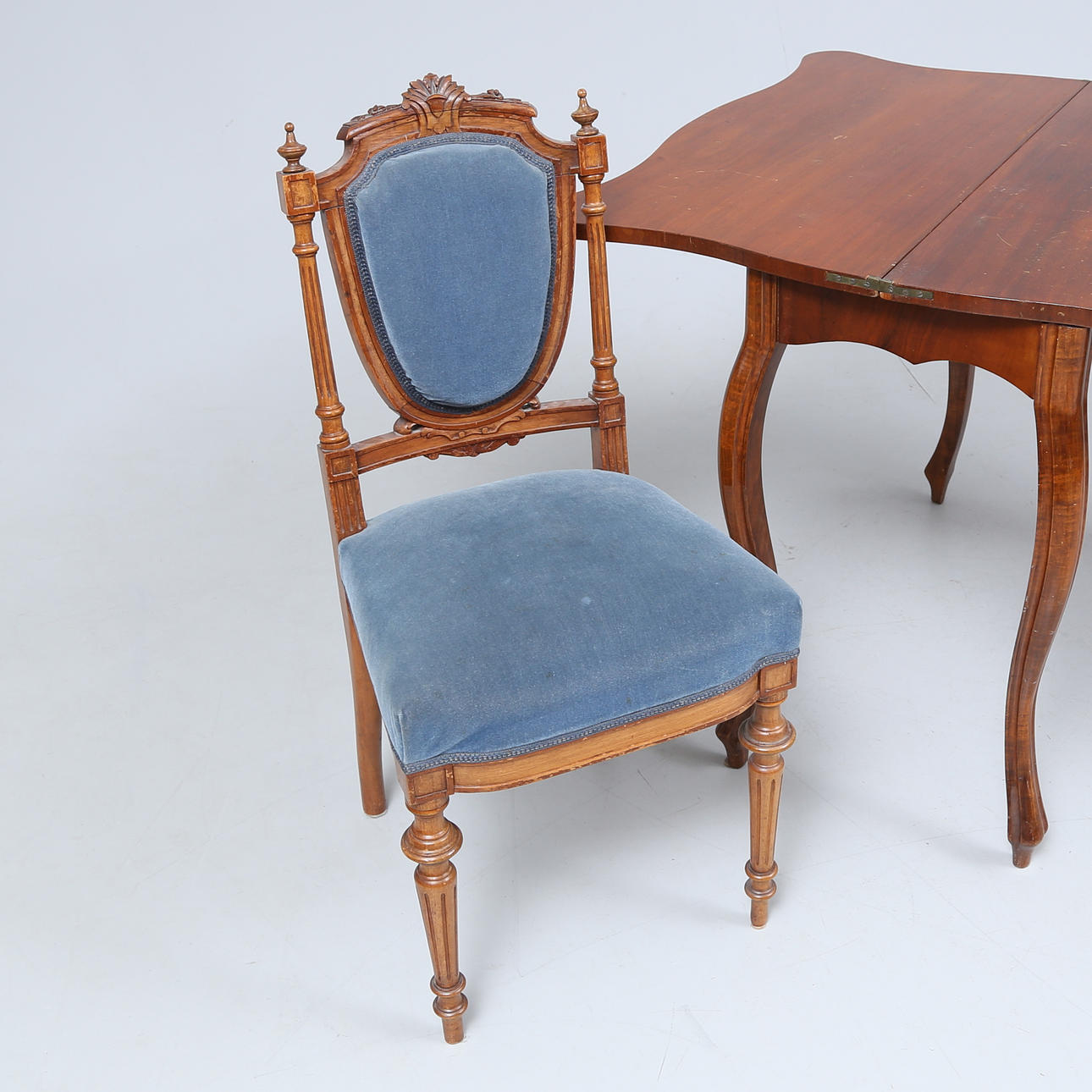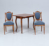 Stolar, 1 par. Höjd ca 92 cm. Spelbord, Höjd ca 76 cm, längd ca 84 cm, bredd ca 42 cm.