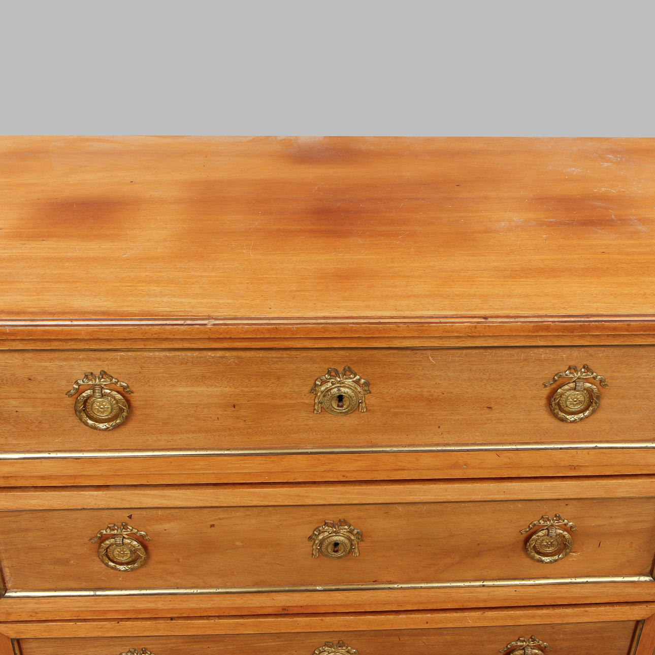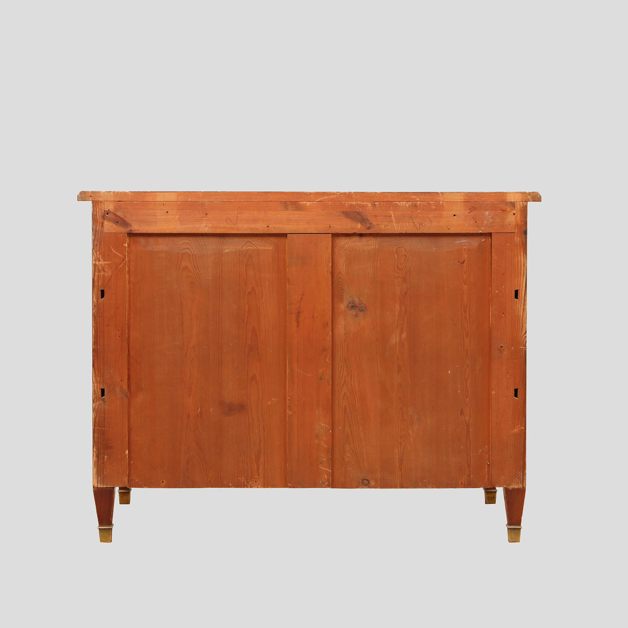 Mahogny. Beslag i gulmetall. Tre lådor. Längd 101, bredd 49, höjd 77 cm.