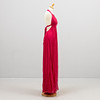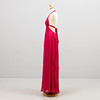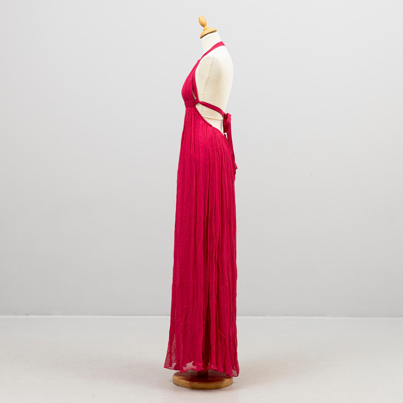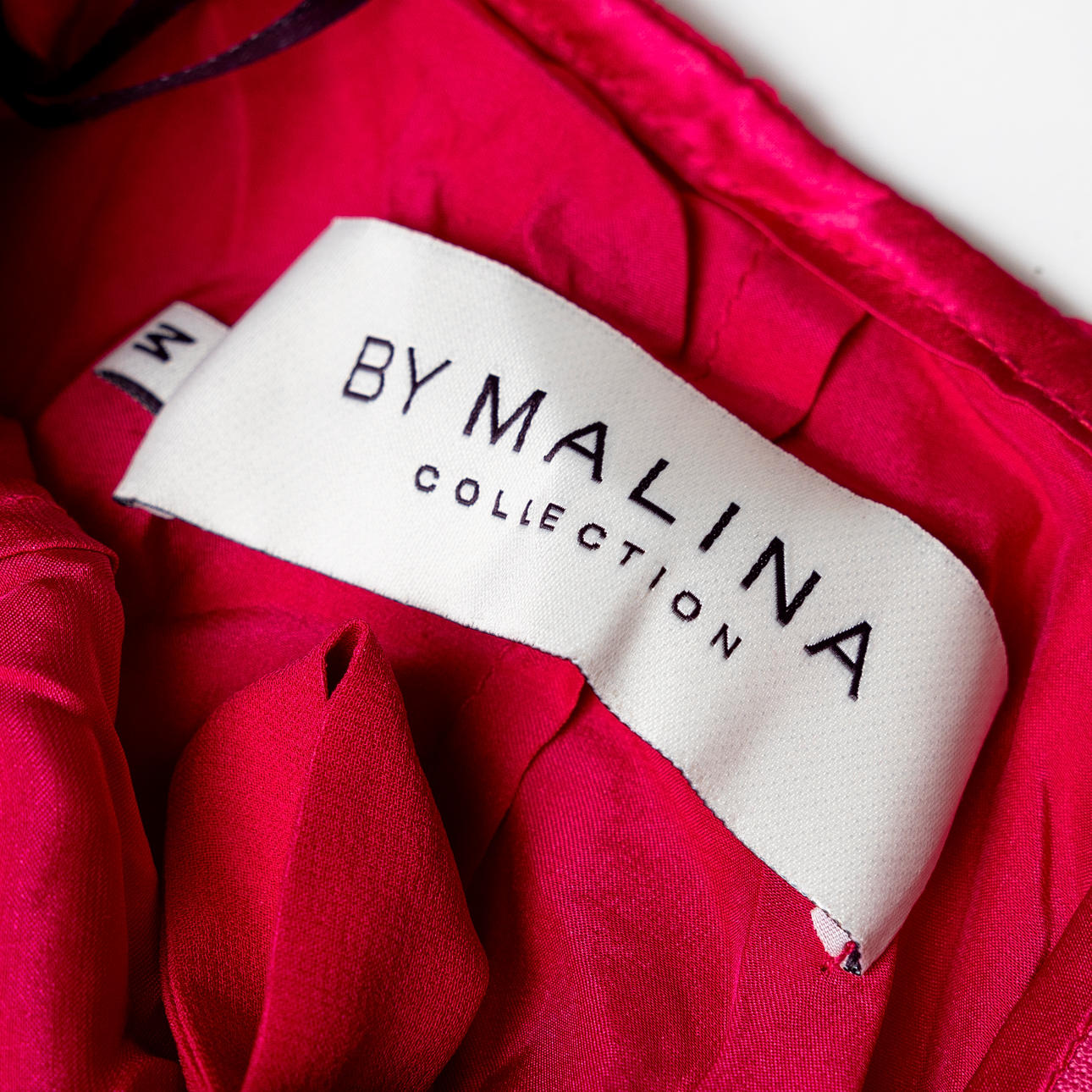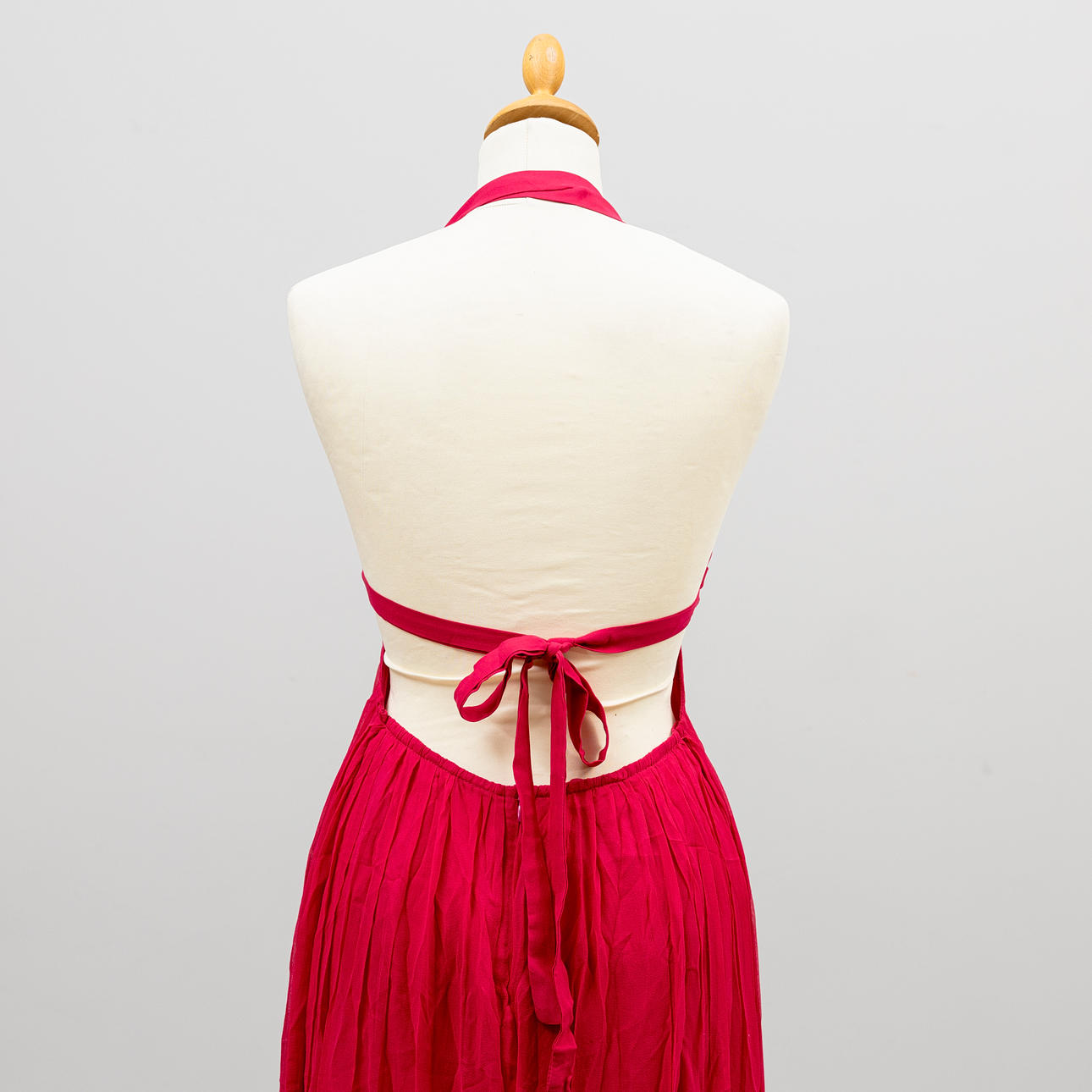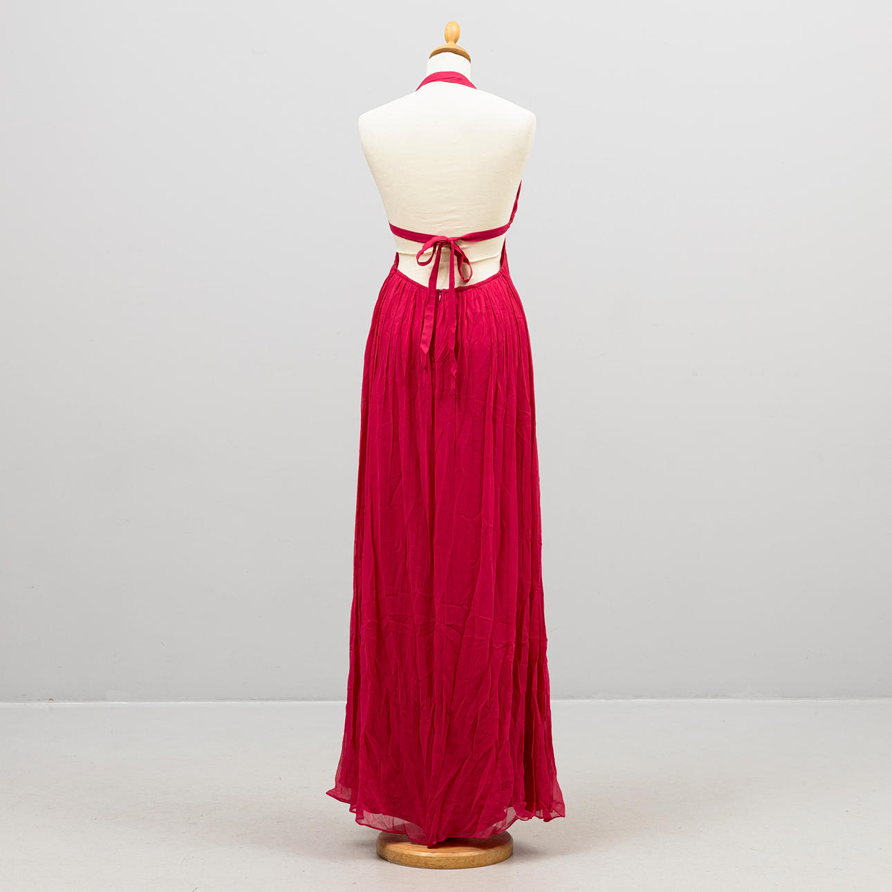 Cerise siden, ärmlös halterneckmodell med knytband i rygg. Dold dragkedja i rygg. Etikettmärkt "BY MALINA COLLECTION", enl märkning storlek M.