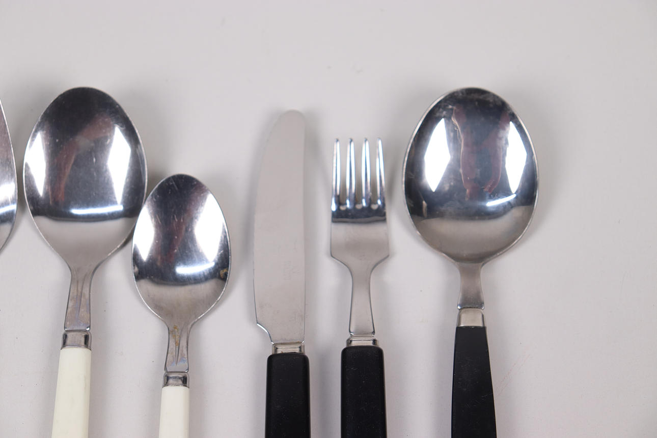 Svarta bestick, 6 gafflar, 6 knivar, 6 skedar.