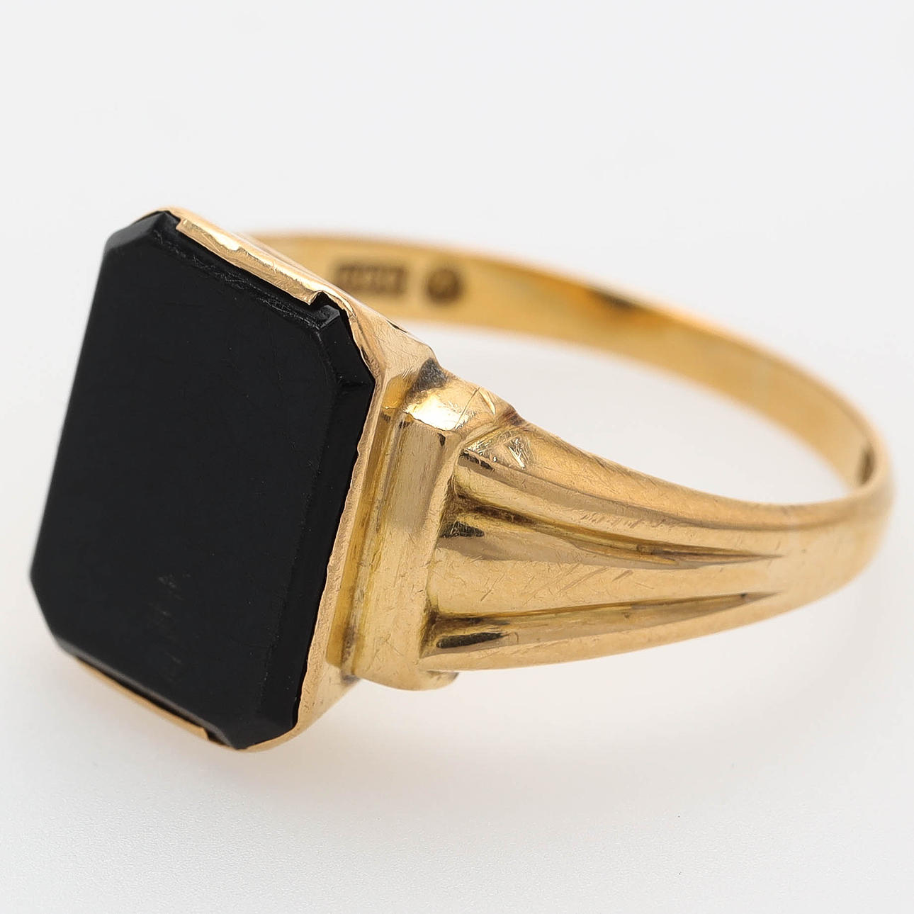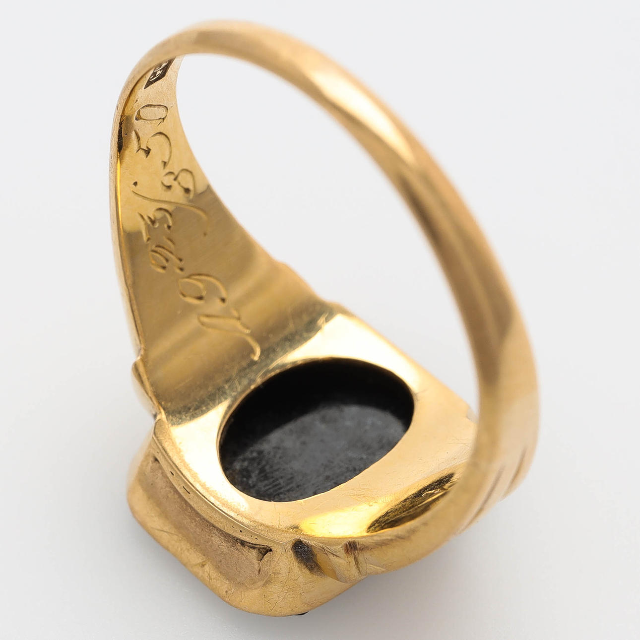 Bruksslitage, gravyr, onyx något lös i fattning, märken.