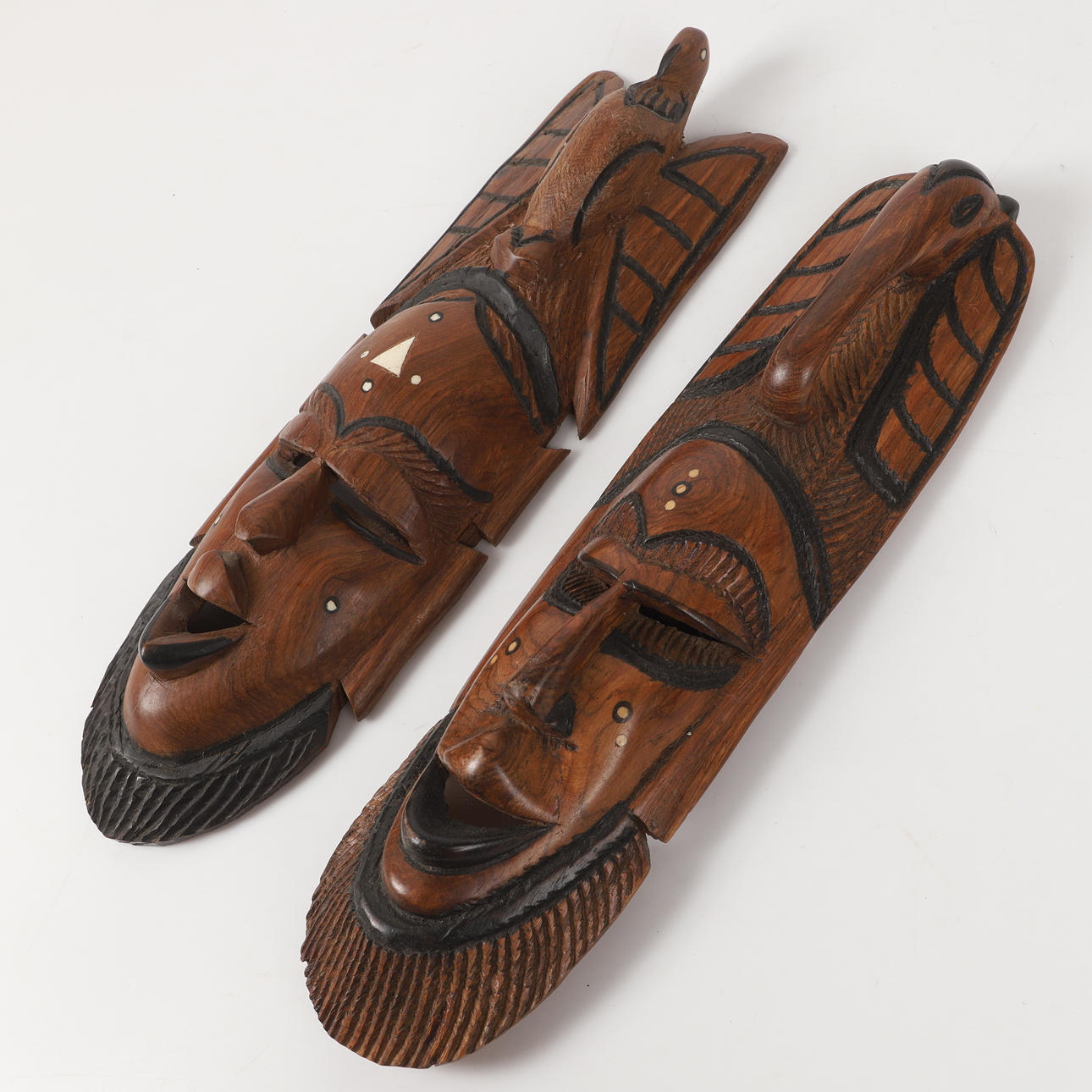 4991576. MASKER, 2 stycken, skuret trä, Afrika.
