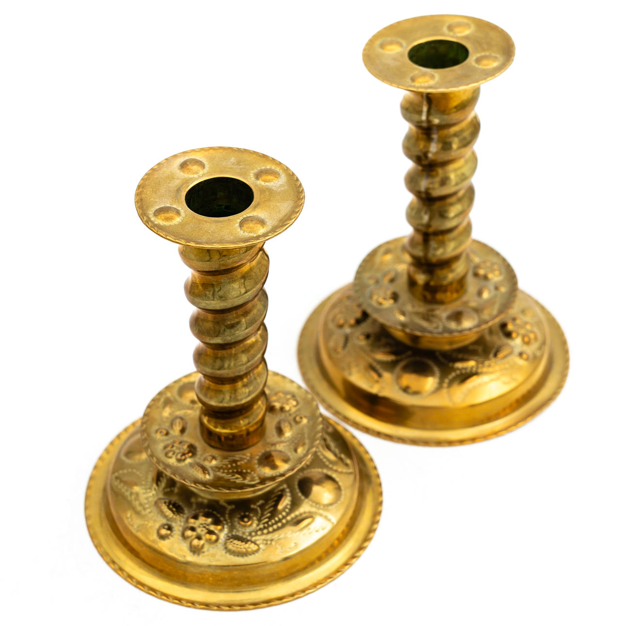 LJUSHÅLLARE, Ett par, Barockstil, Mässing, (2st).